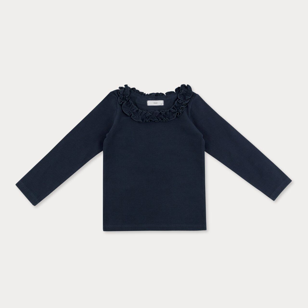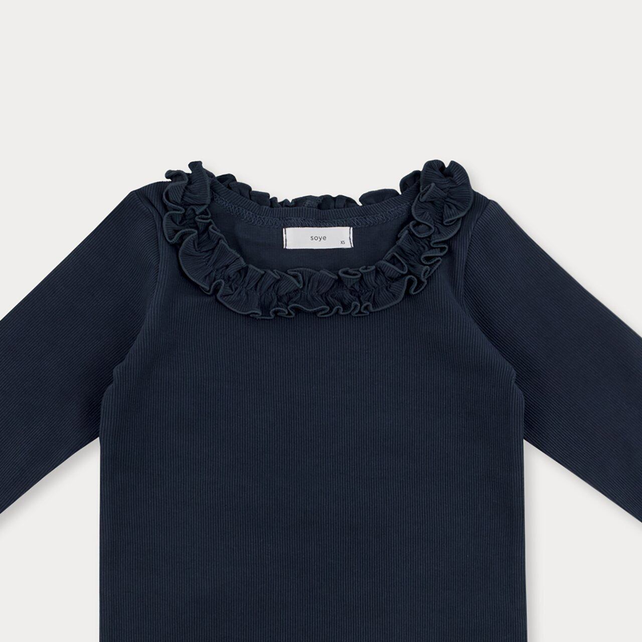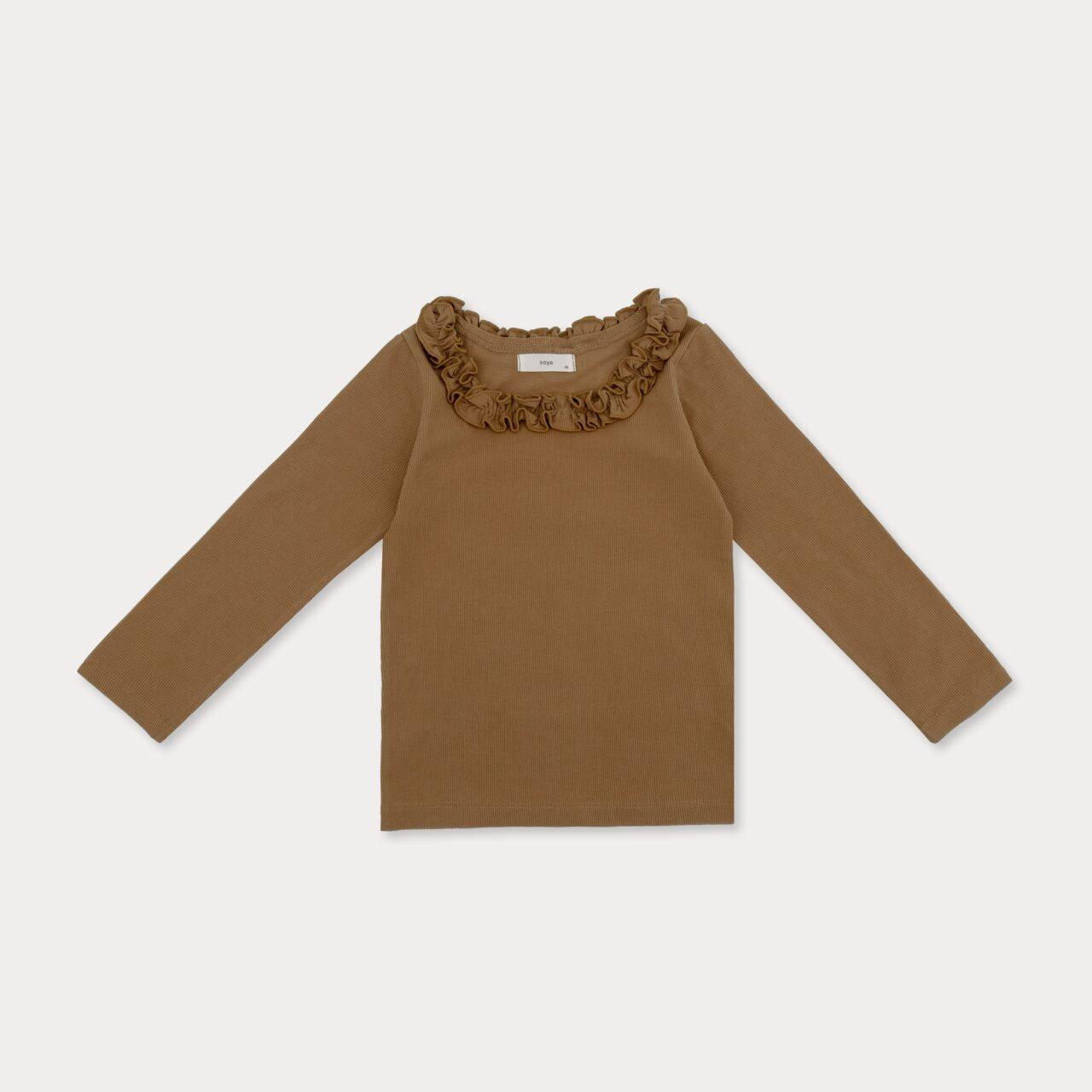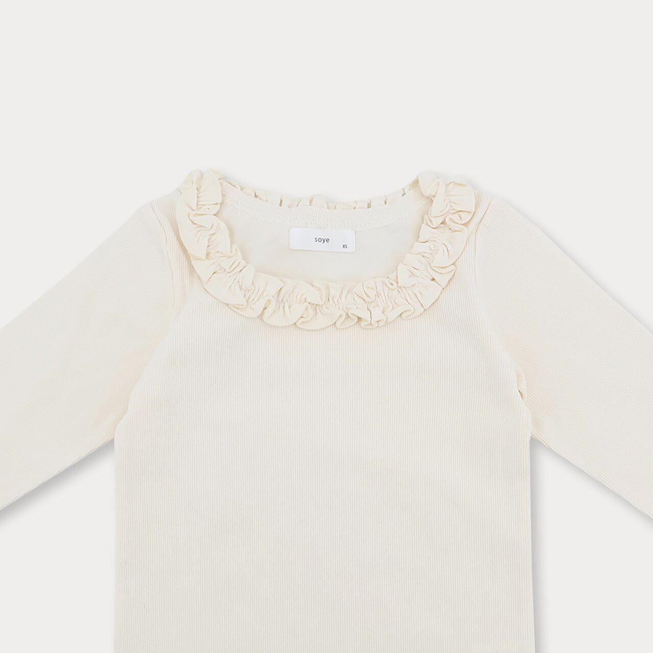 ネックラインに沿った繊細なフリルディテールが魅力的な一枚です。