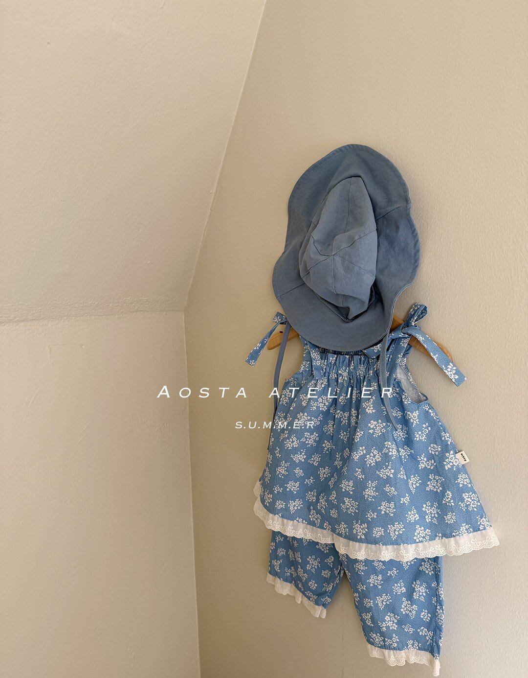 同じ素材で仕立てたブラウスとパンツを合わせれば、季節感あふれるサマーコーデが完成。