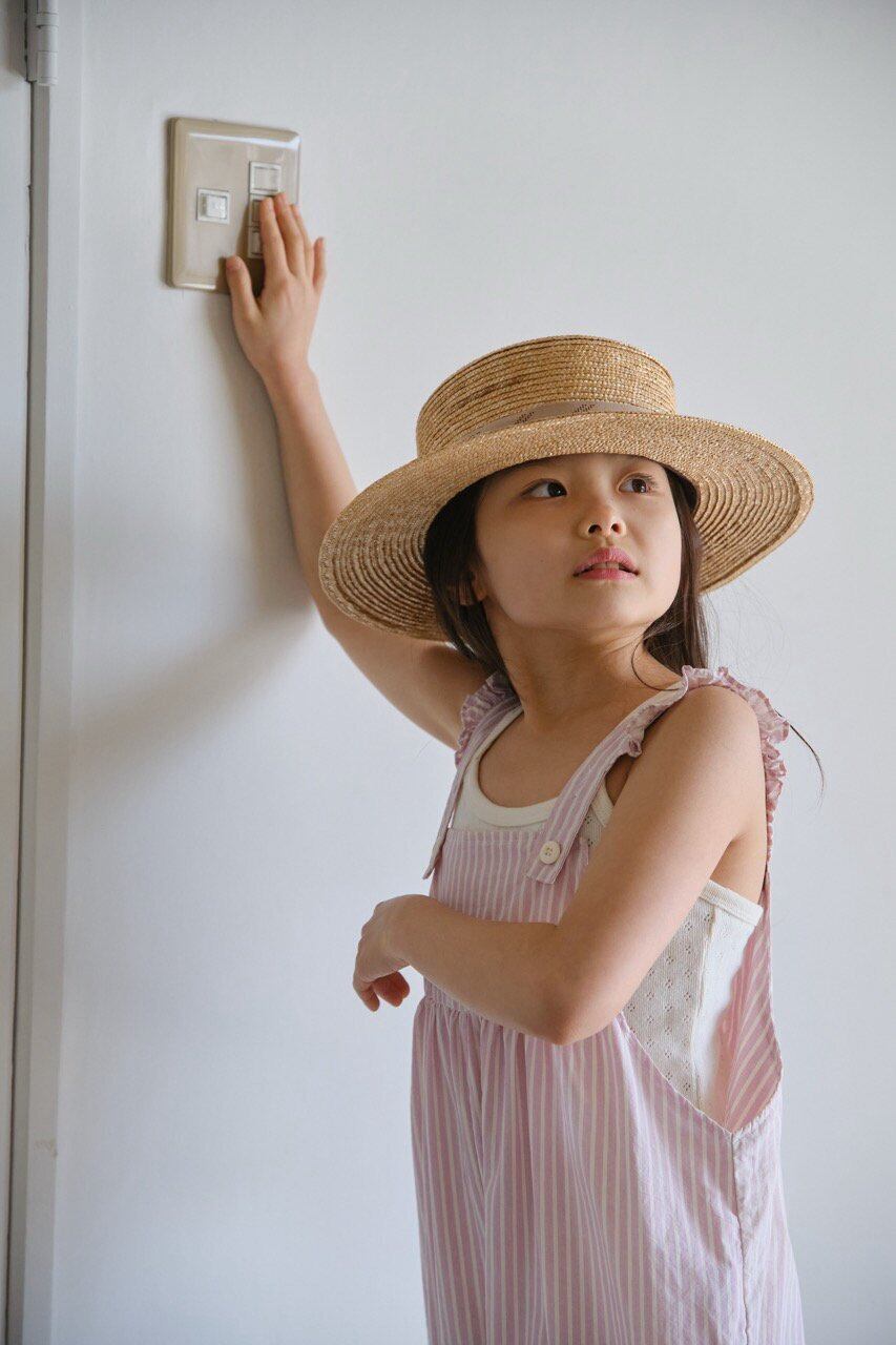柔らかなコットン100%素材に、肩紐のフリルデザインがガーリーなアクセント。