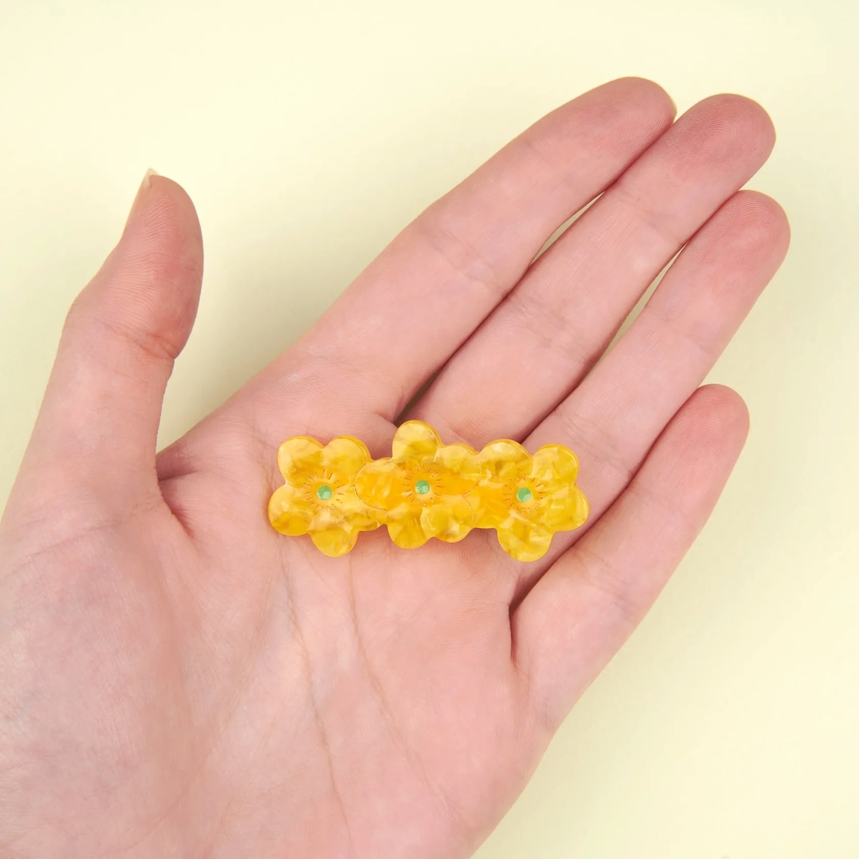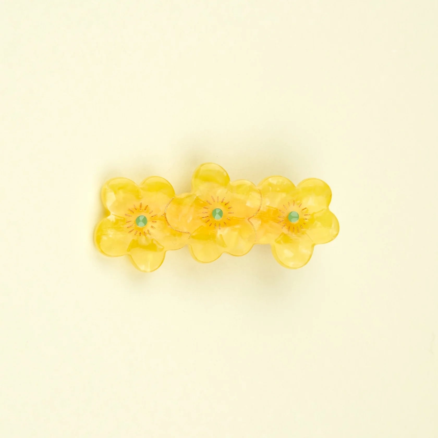 A series of three little buttercups with a bright green heart and gold details to keep our hair firmly in place. This pretty barrette clings perfectly to the hair of both kids and adults for a delightfully spring-like look.