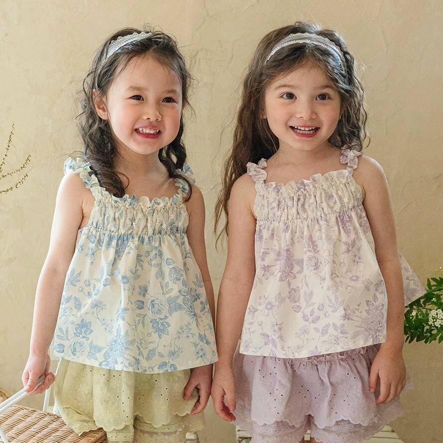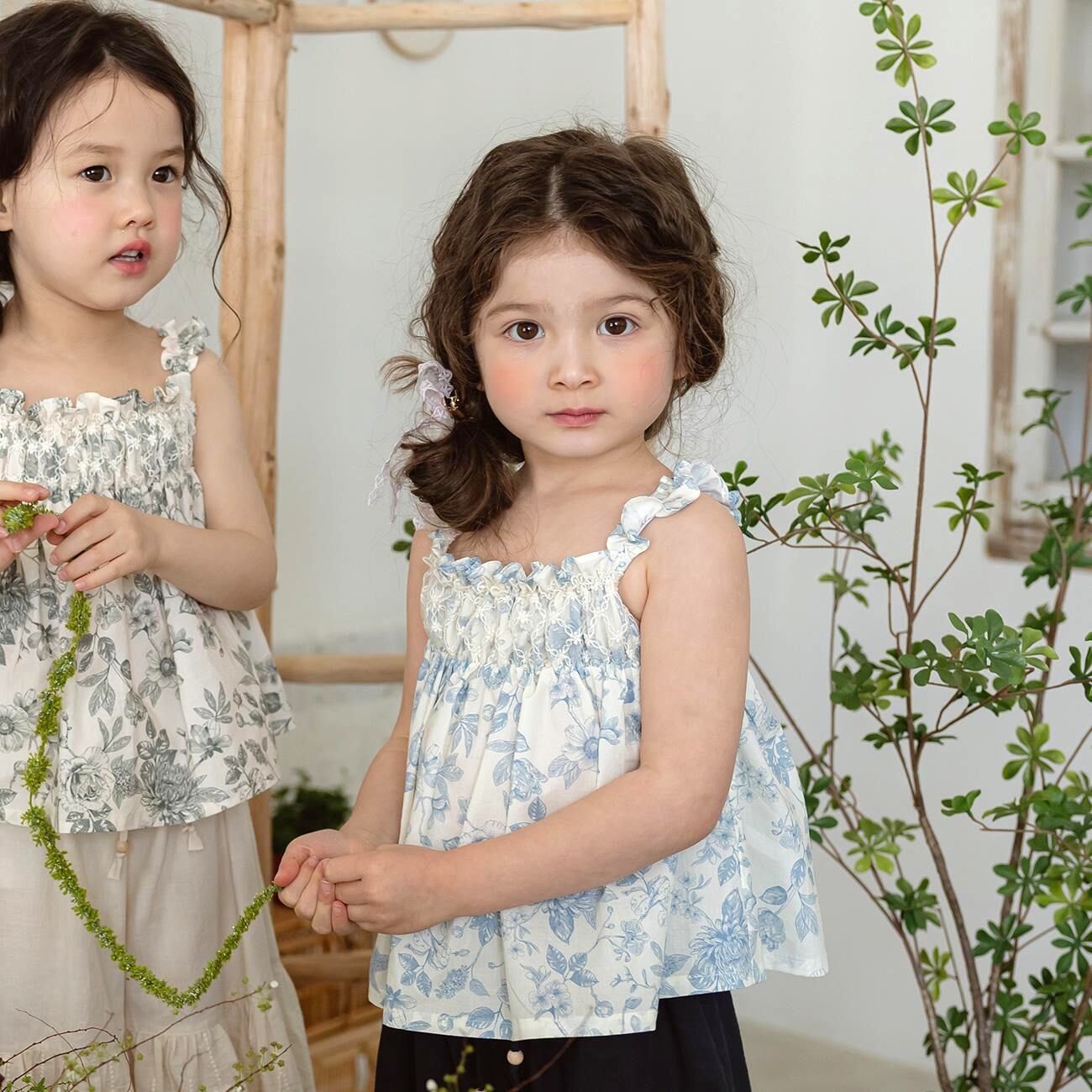 やわらかなコットン素材に花柄をあしらったノースリーブブラウスです。