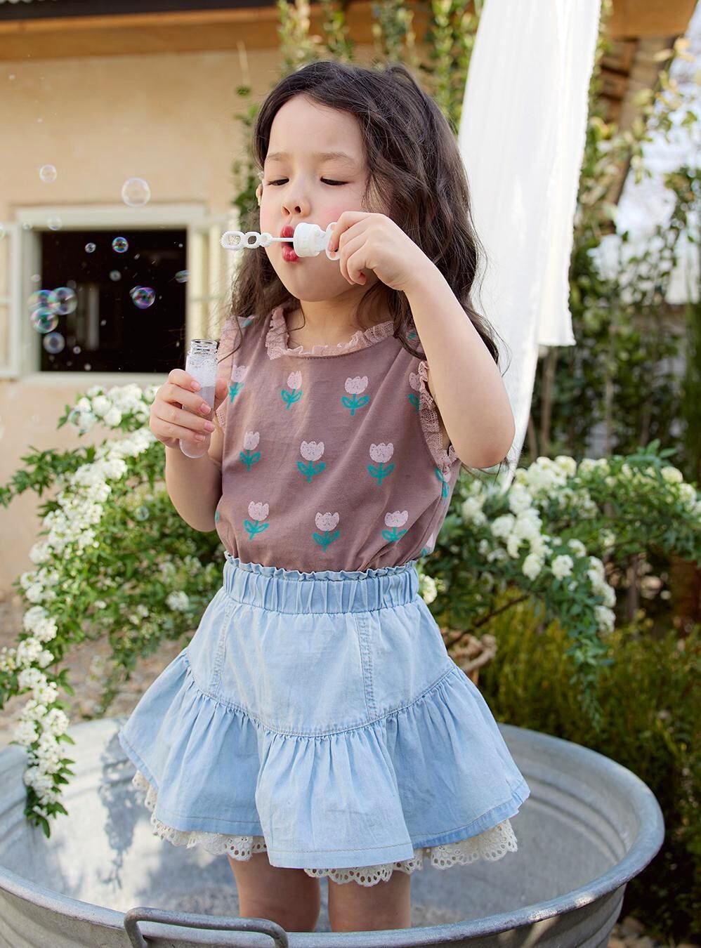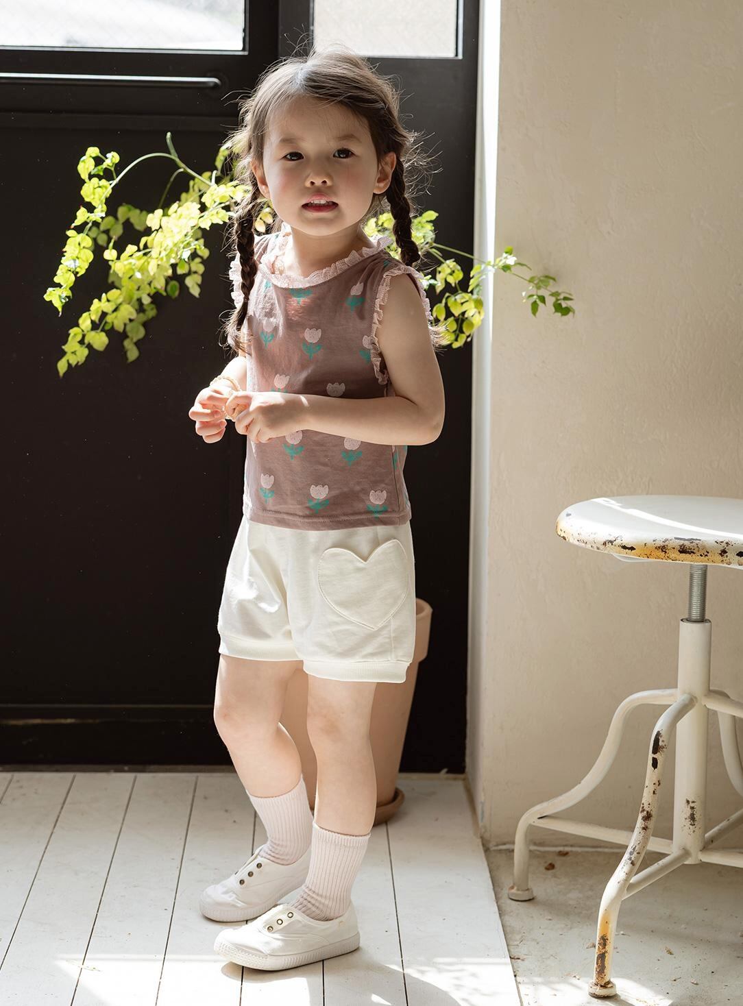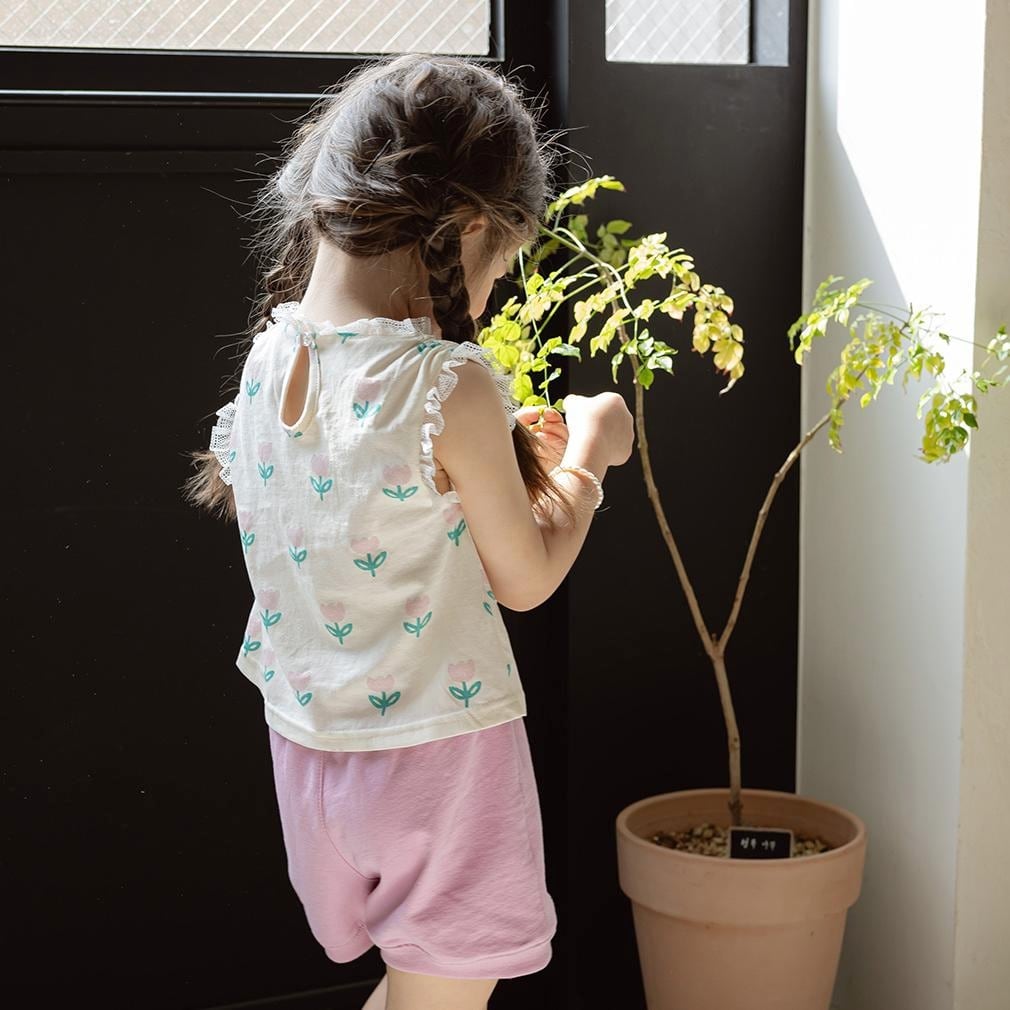 やわらかなコットン素材にチューリップ柄をあしらったノースリーブトップスです。