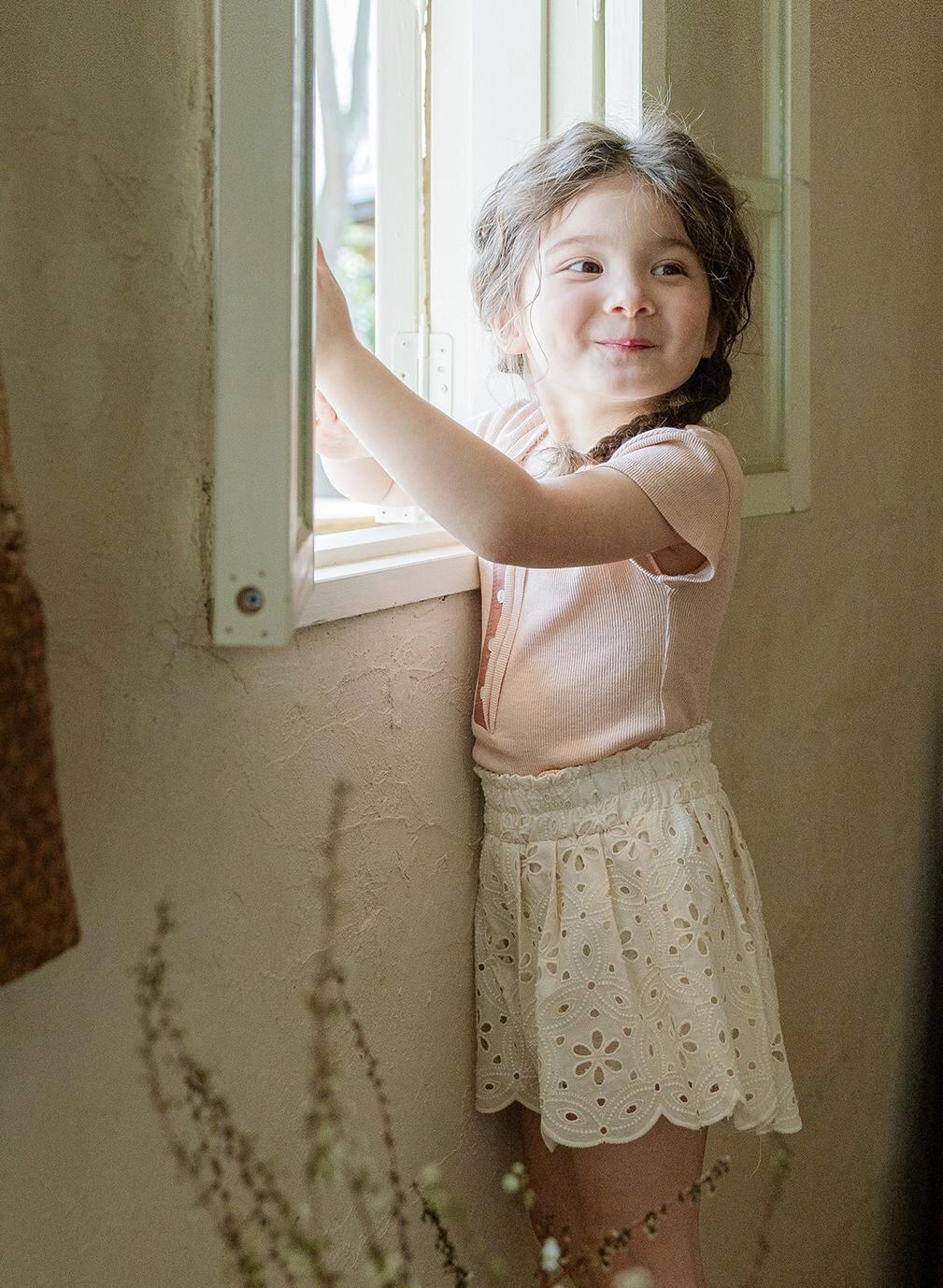 肌に優しくフィットするリブの質感が心地よく、動きやすさも抜群。