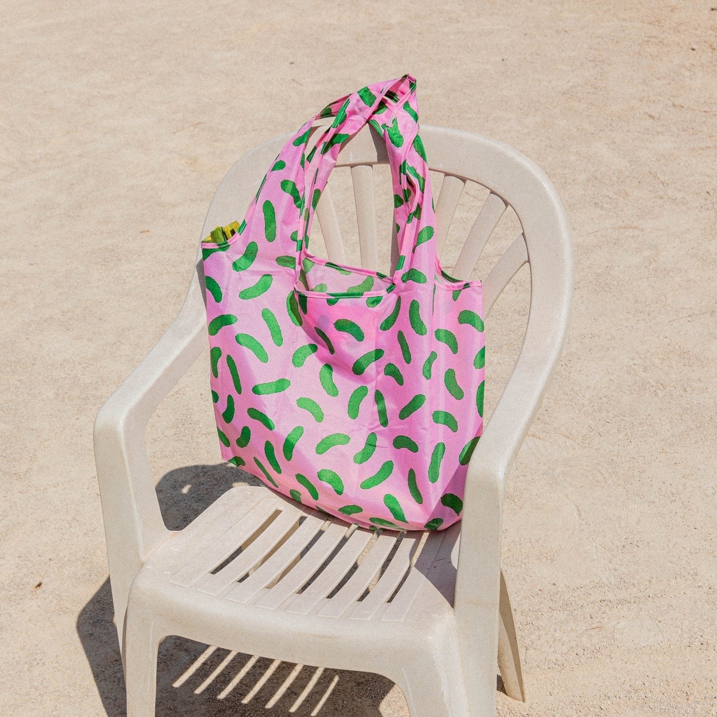 The exciting new arrival we’ll never leave home without: the Coucou Suzette shopping tote! A super lightweight, endlessly reusable bag that folds up to fit perfectly in your fanny pack—ready to tag along on all your daily adventures. We love its sturdy fabric made from recycled materials, tough enough to carry all your treasures and perfect for picnics or beach days. And of course, it’s topped off with a delightful pickle print!