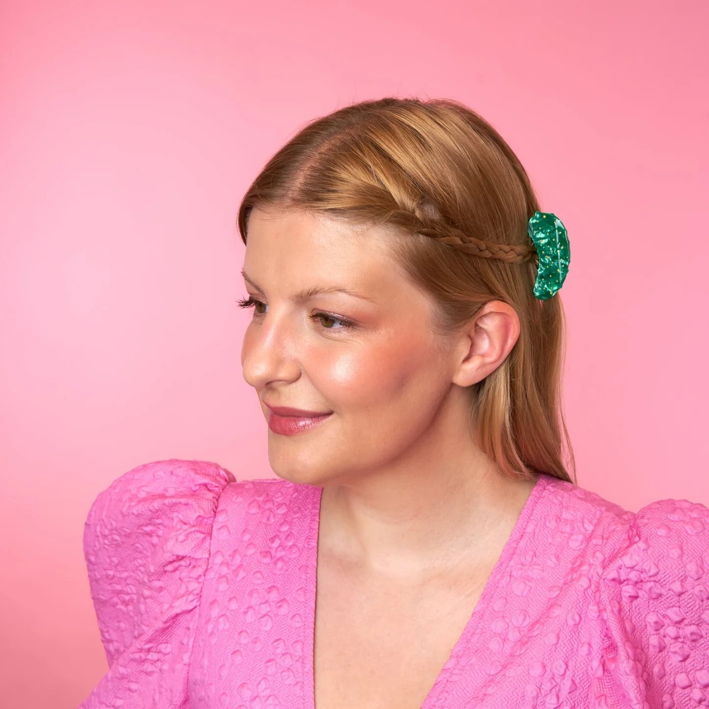 The ultimate must-have for picnics, sandwiches, and cheesy raclettes: the pickle, of course! We love it so much, we even wear it in our hair as a mini claw clip. A little emerald-green gem sprinkled with golden dots that looks almost good enough to eat.
