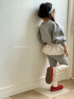 やわらかなリブ素材を使ったガーリーなデザインのレギンスです。