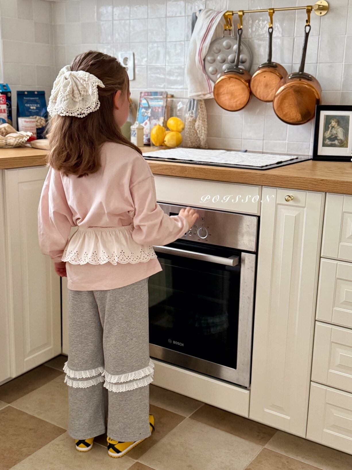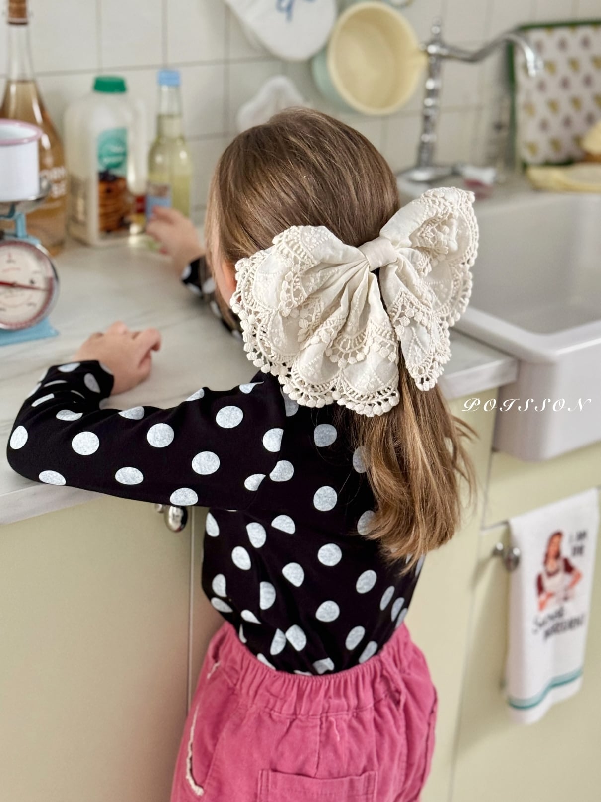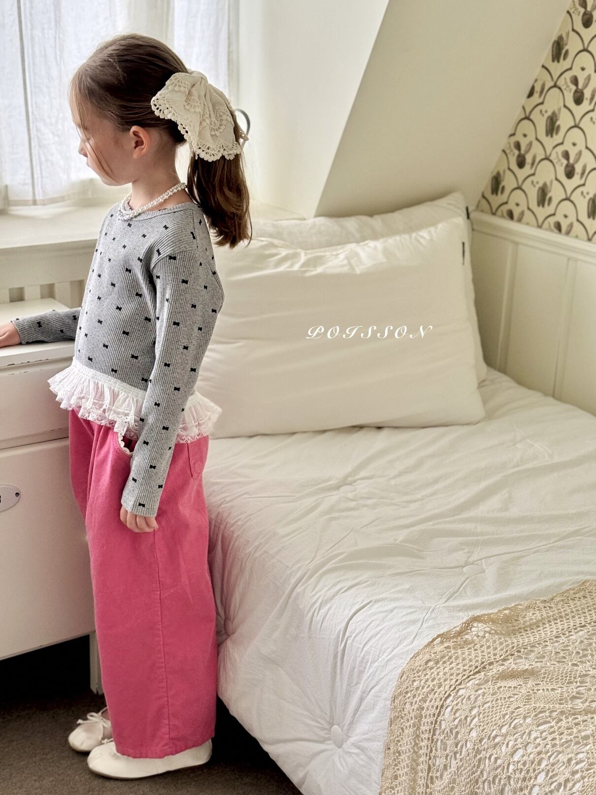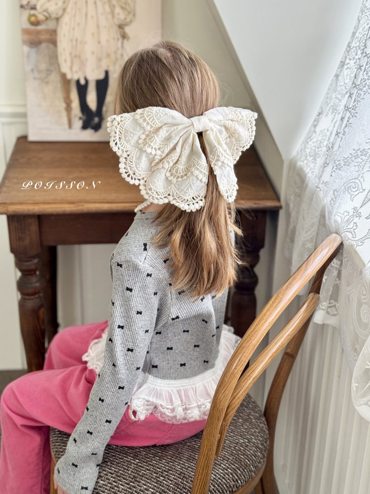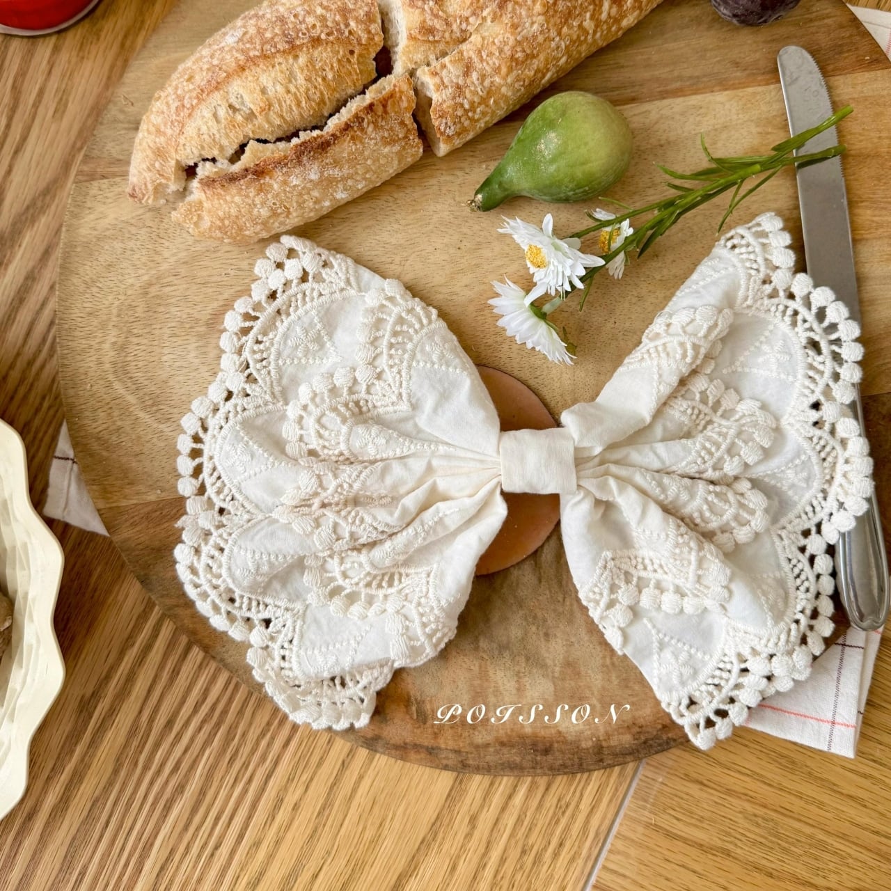 やわらかなコットンレース素材でお子さまの髪にさりげないポイントを添えてくれます。