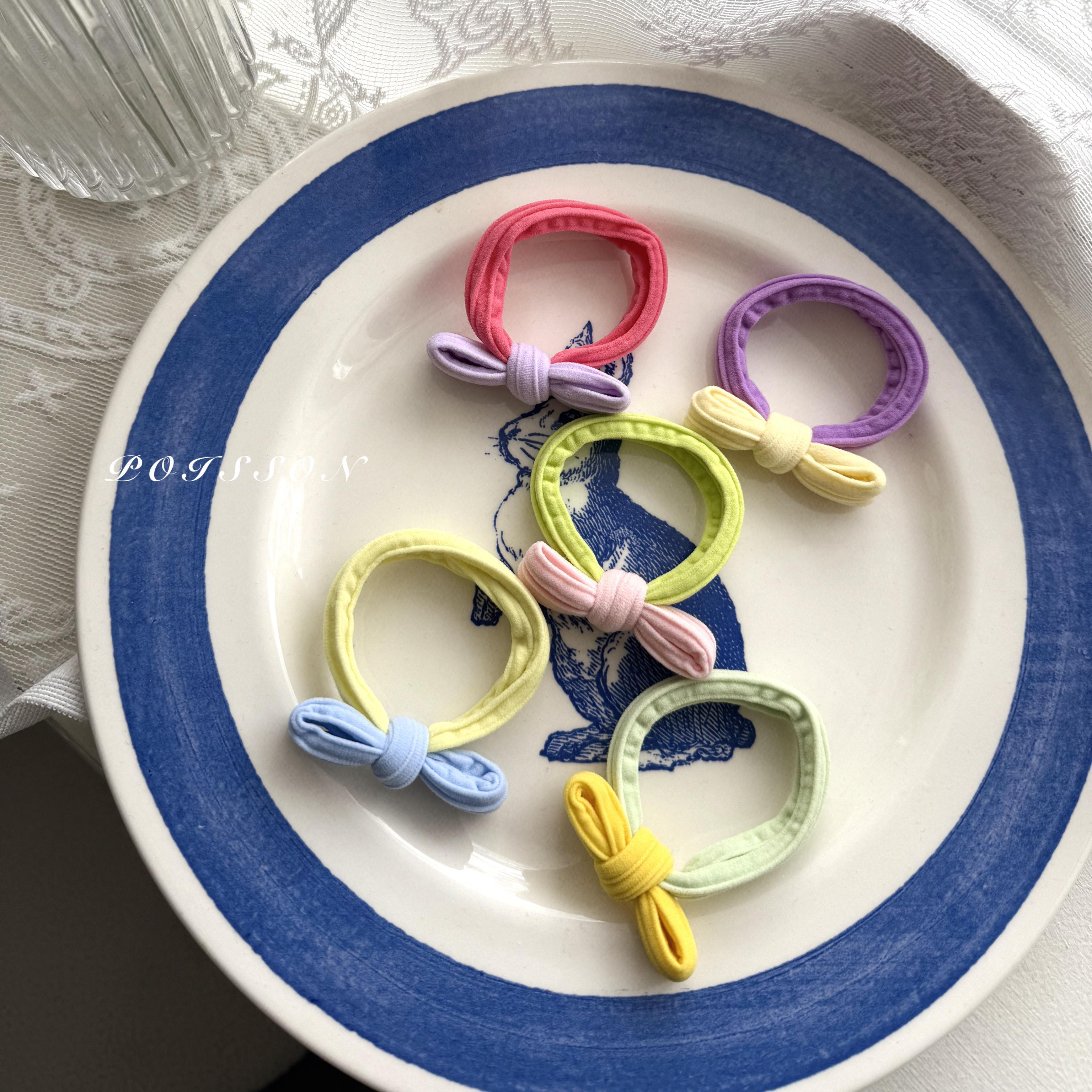 やわらかな色合いが魅力のパステルリボンヘアゴム5本セットです。