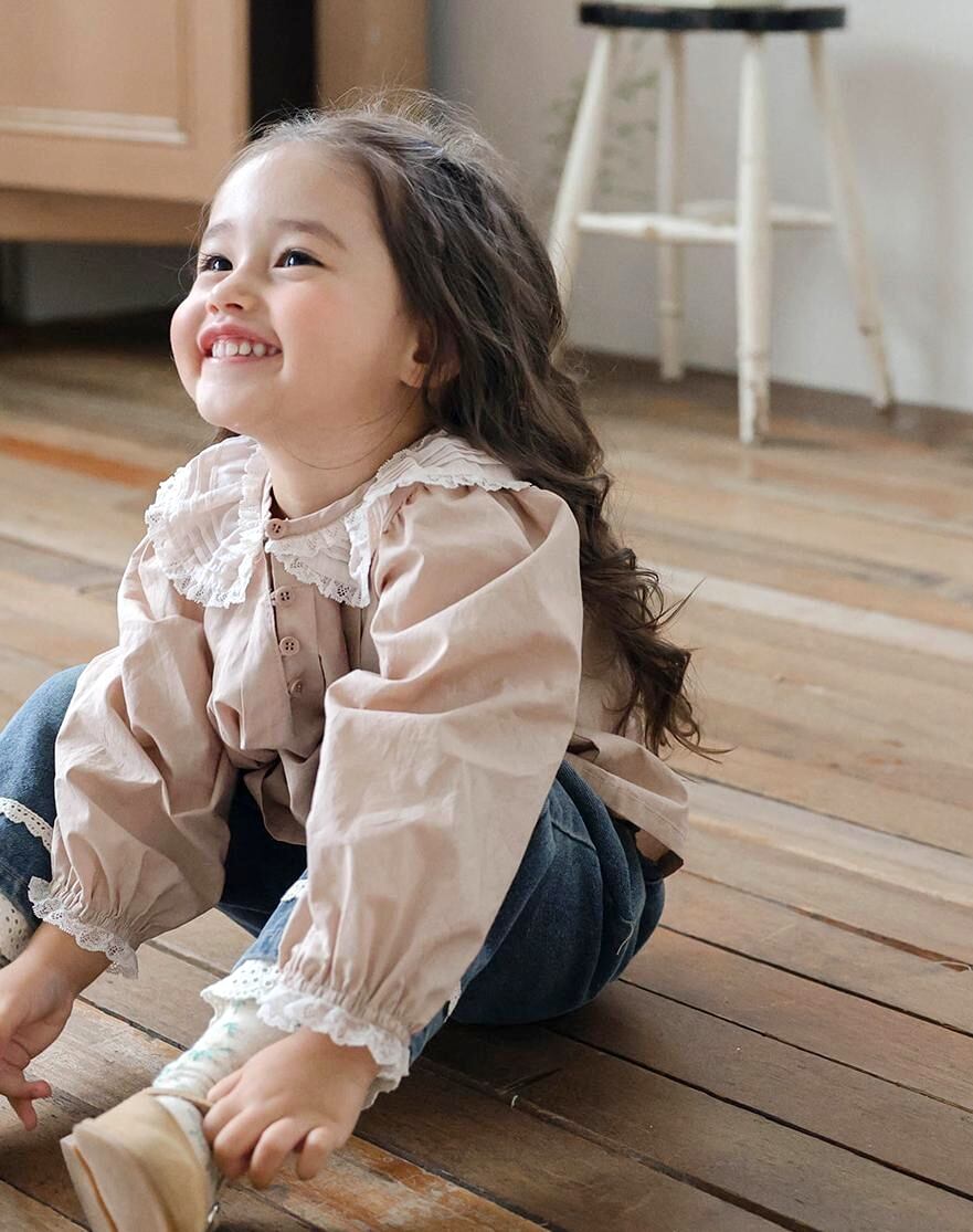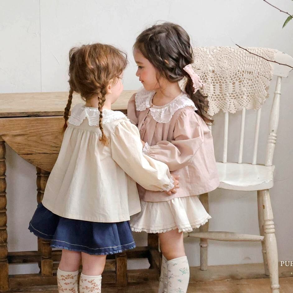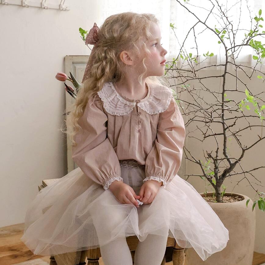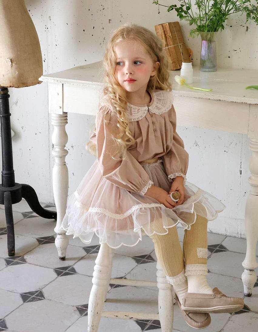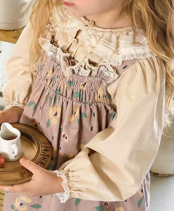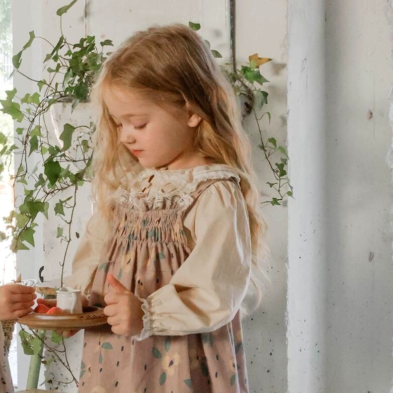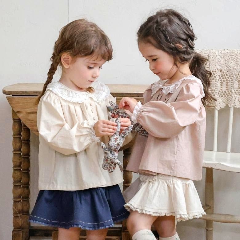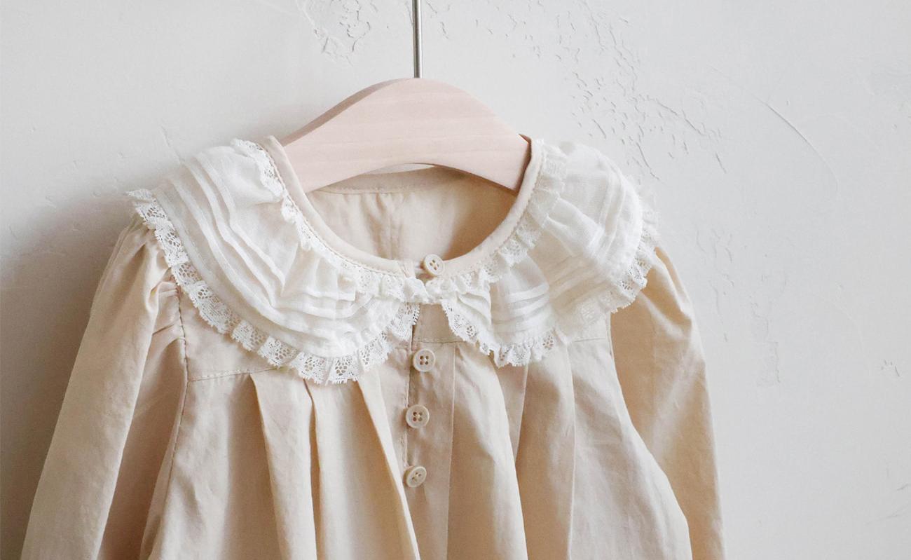 コットン素材をベースに襟のレースと裾のピンタックデザインが全体の雰囲気を格上げしてくれます。