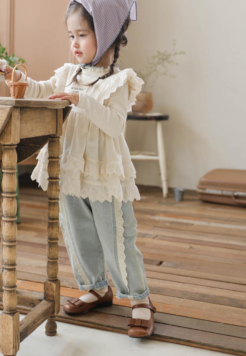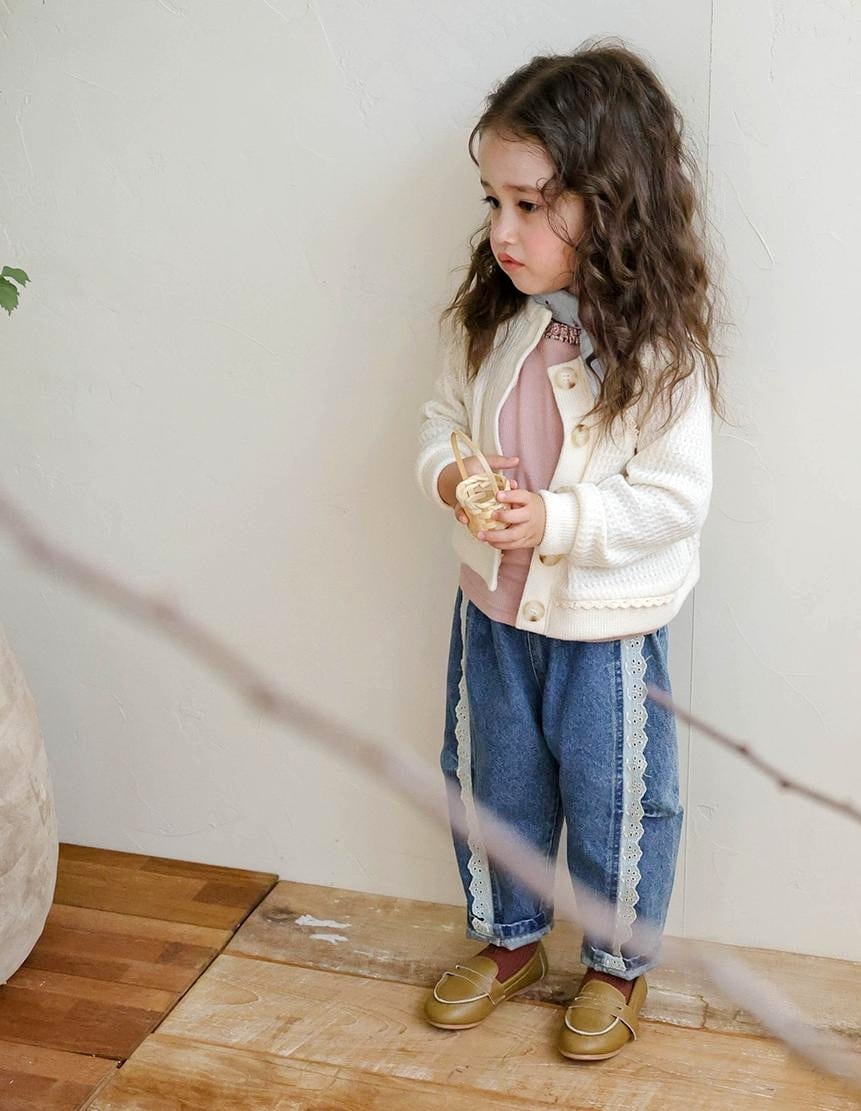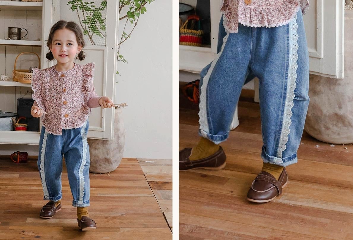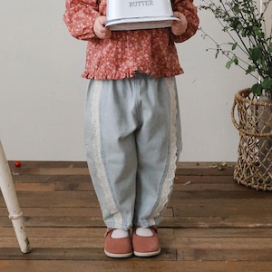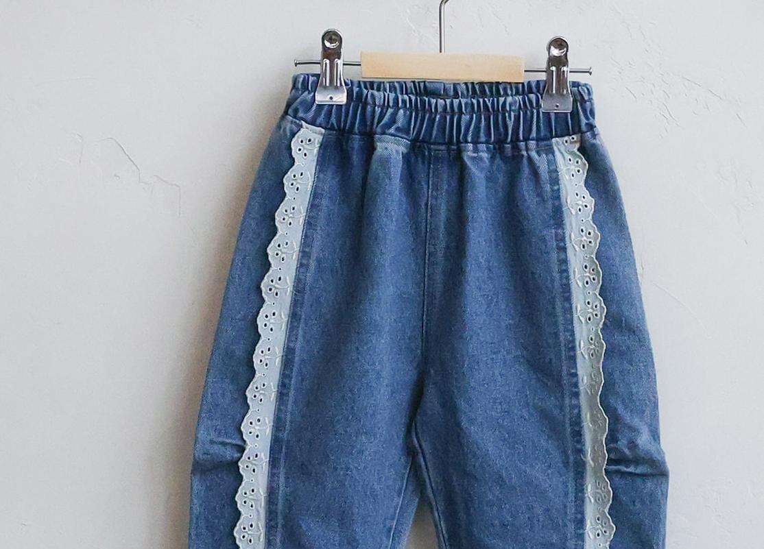 サイドにレースのディテールかわいいデニムパンツです。