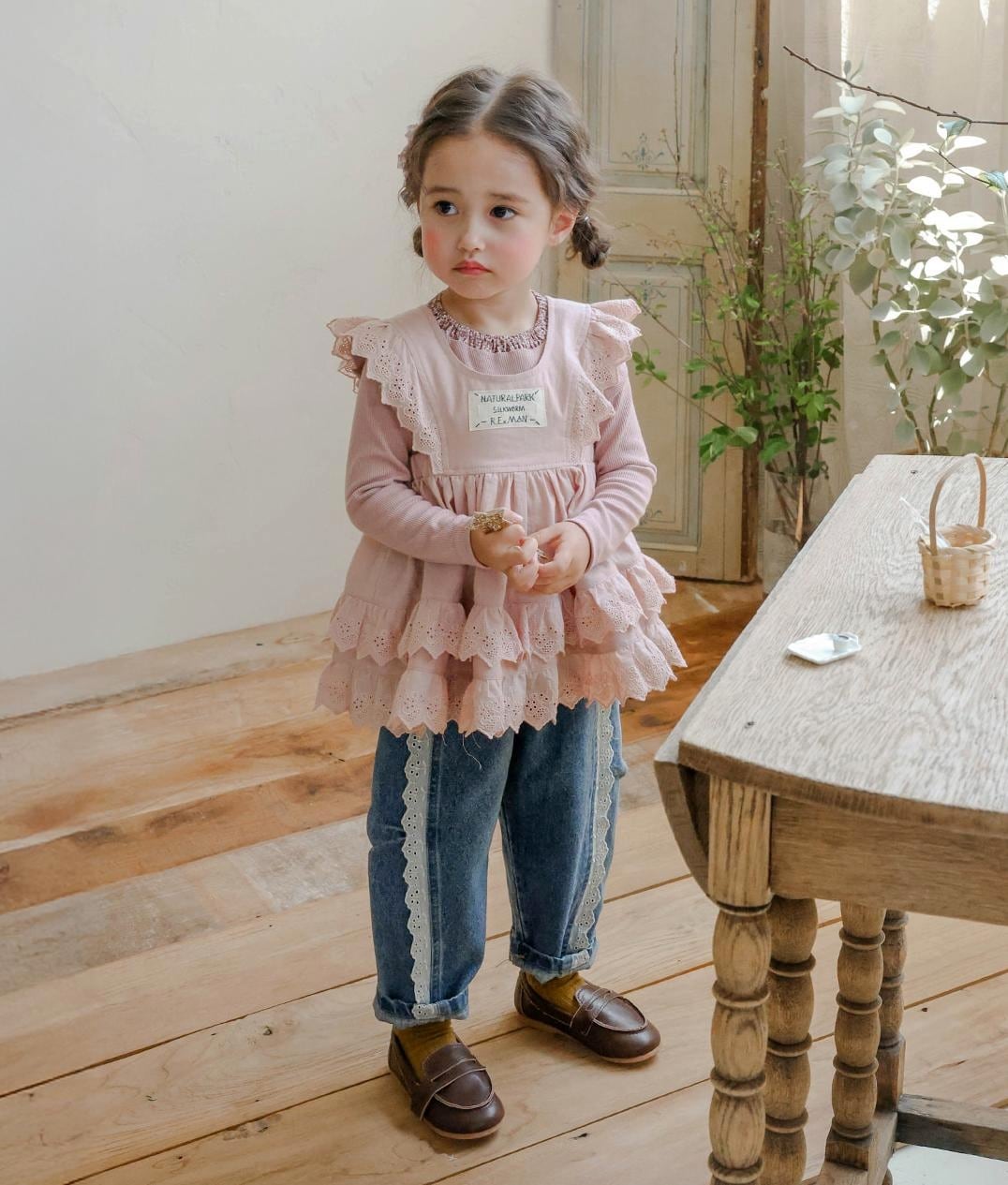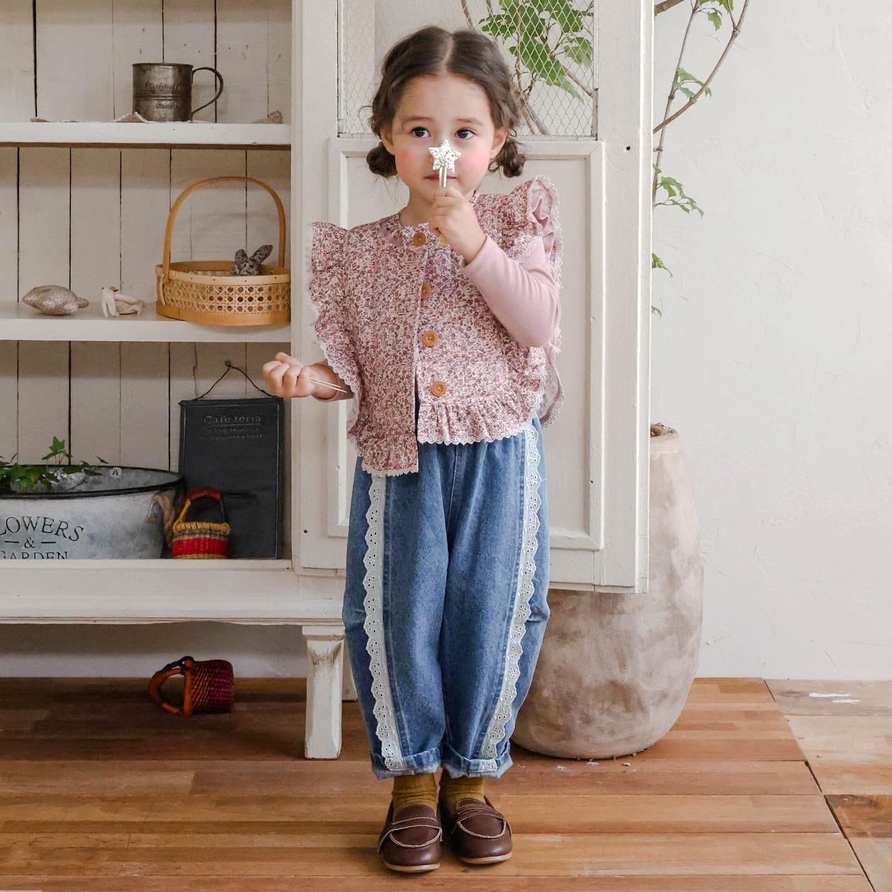程よいワイドシルエットに少し高めにウエスト位置を設定してカジュアルなデニムもfloの甘い魔法でガーリに*
