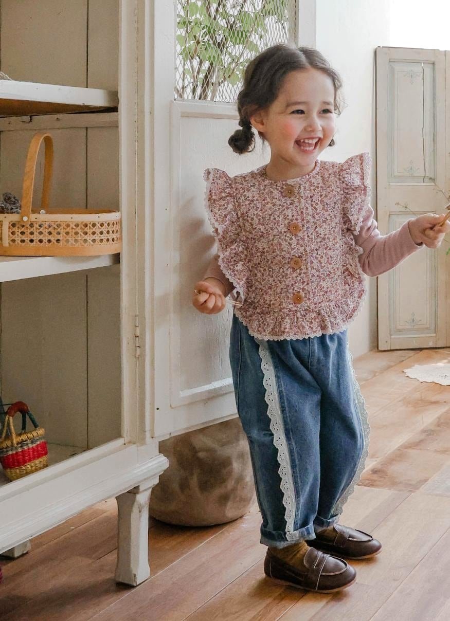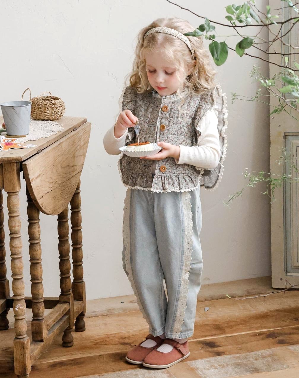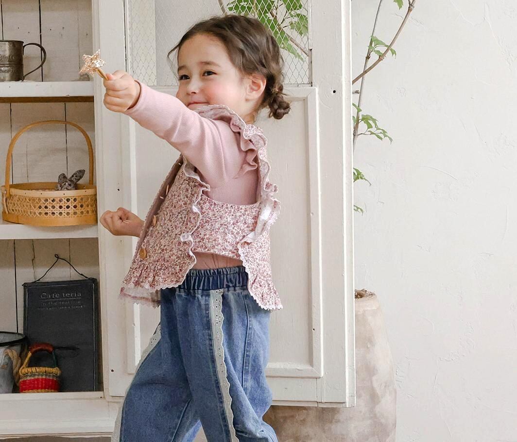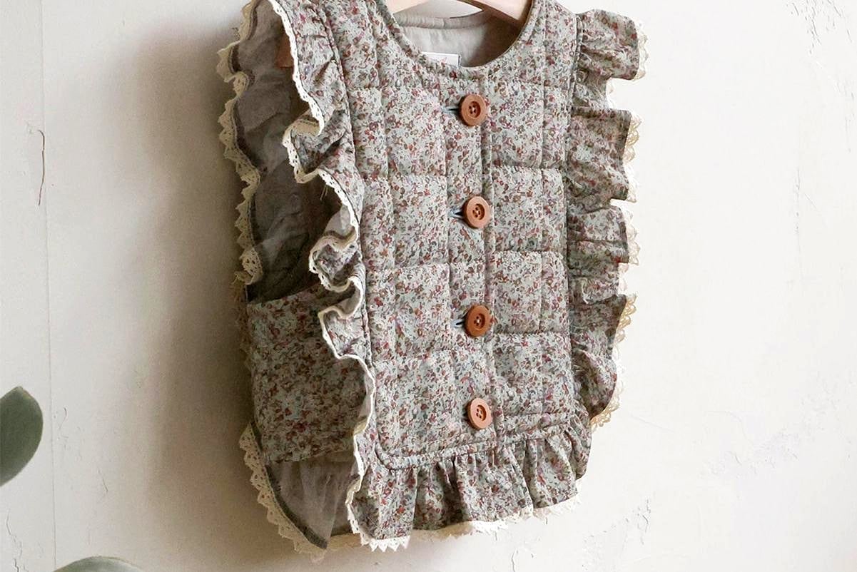 コンパクトな丈感にフリルとレースが存在感ばっちりなキルティングベストです。