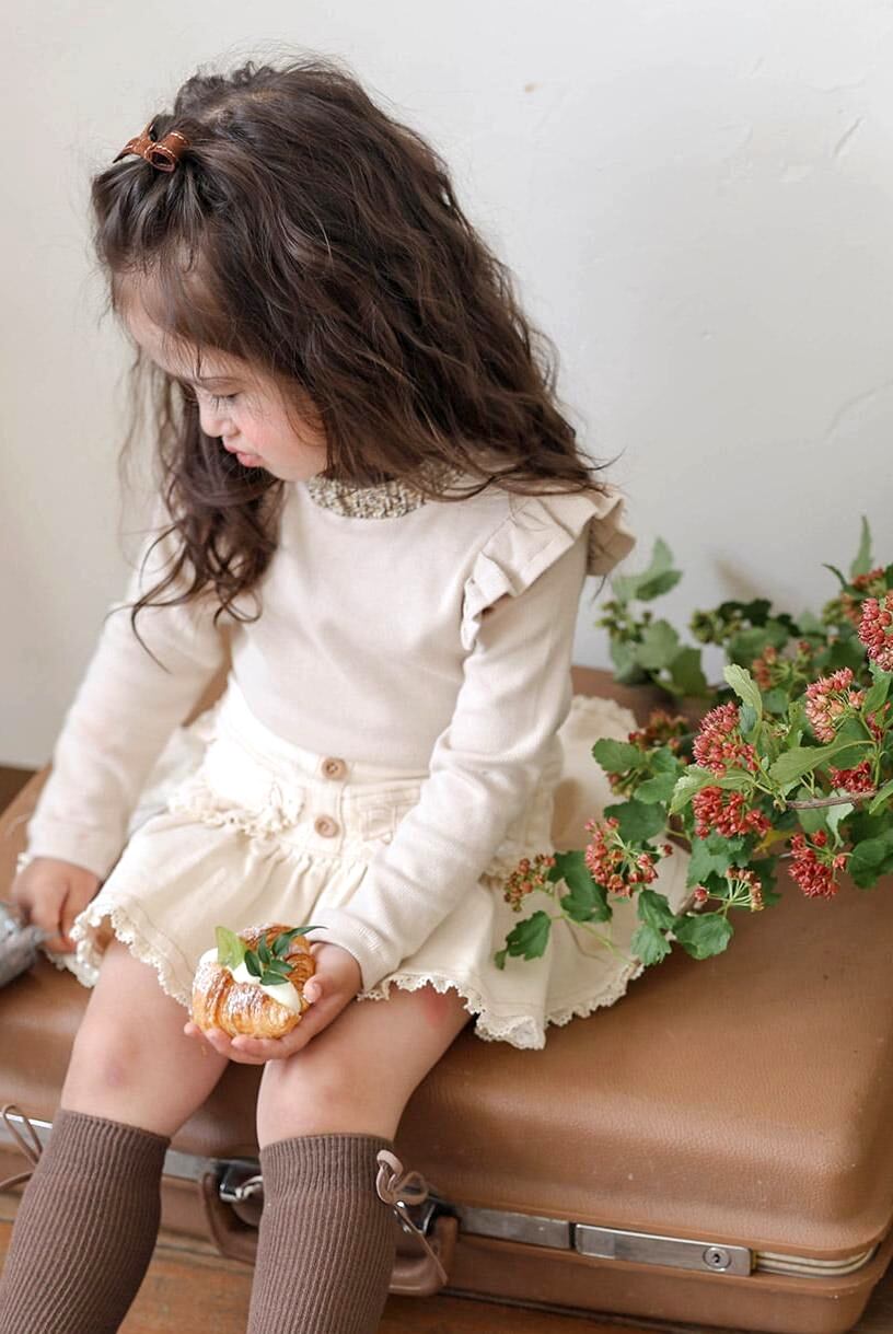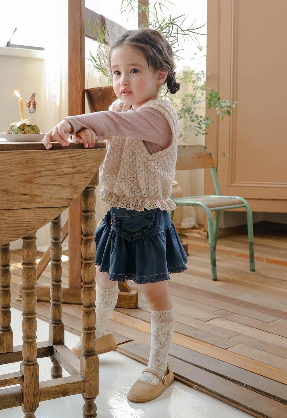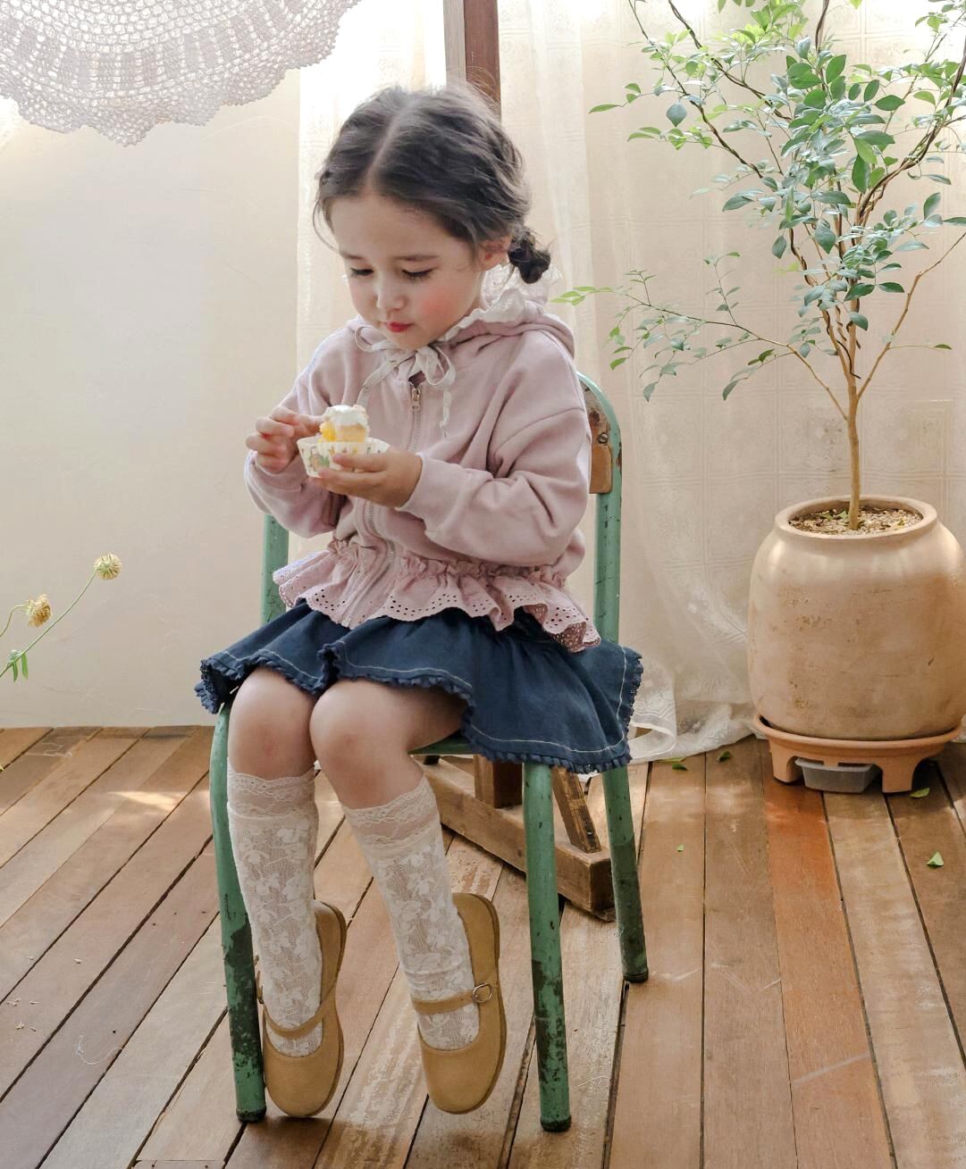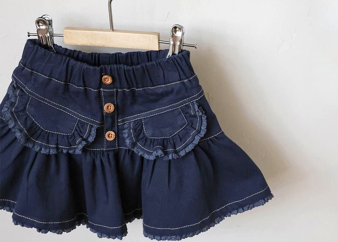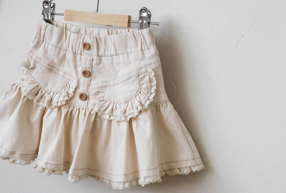 裾に向かって広がるフレアラインと裾のレースが女の子らしいデザインです。