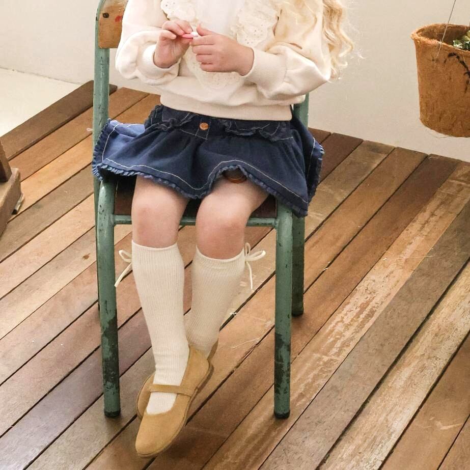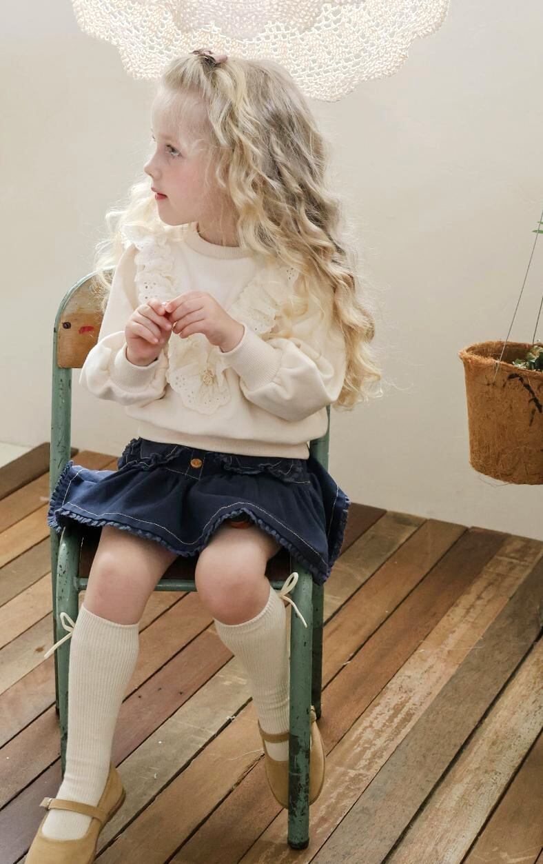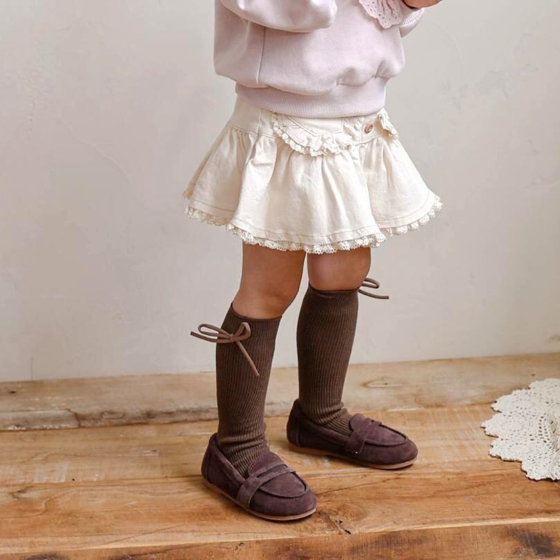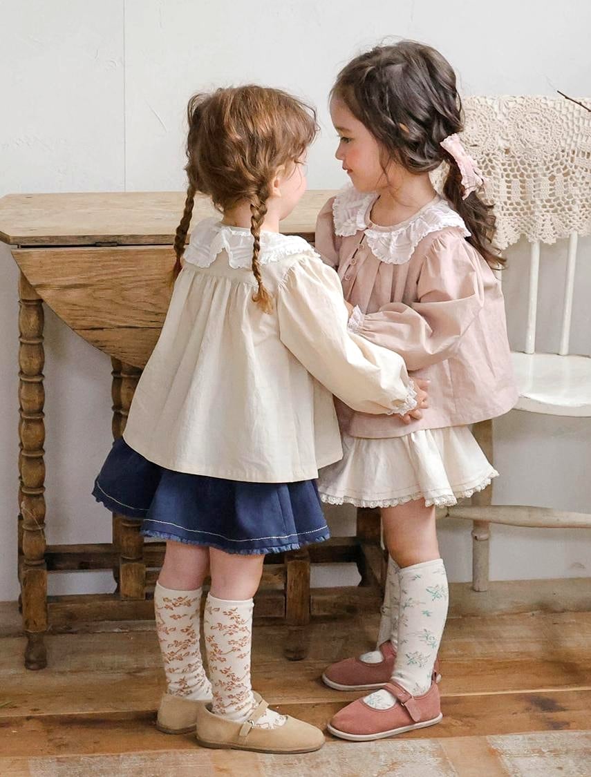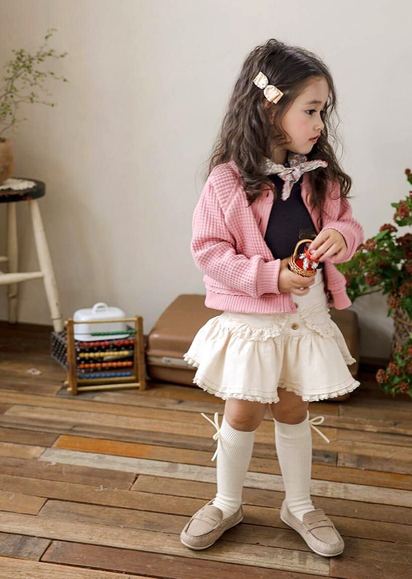 裾に向かって広がるフレアラインと裾のレースが女の子らしいデザインです。