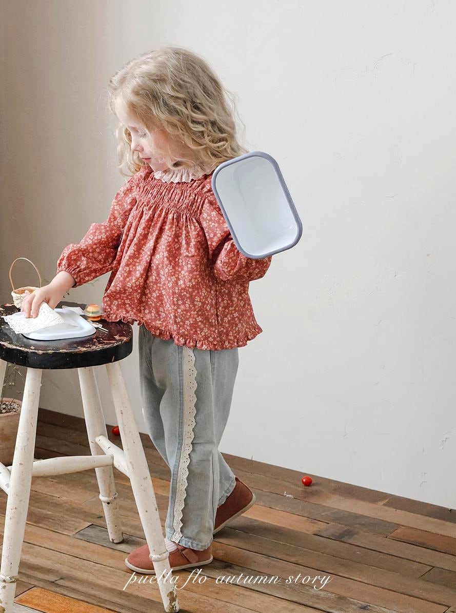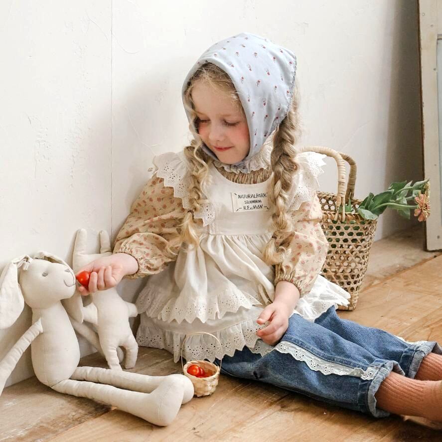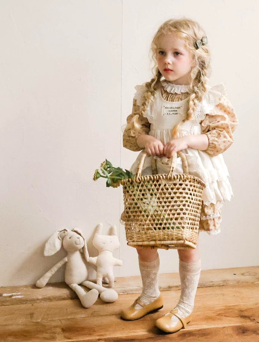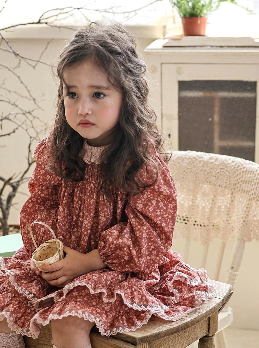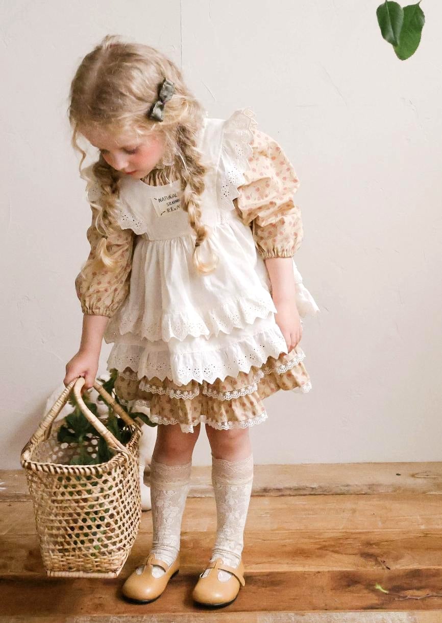 花柄のコットン素材をベースにスモックレースが全体の雰囲気を格上げしてくれます。