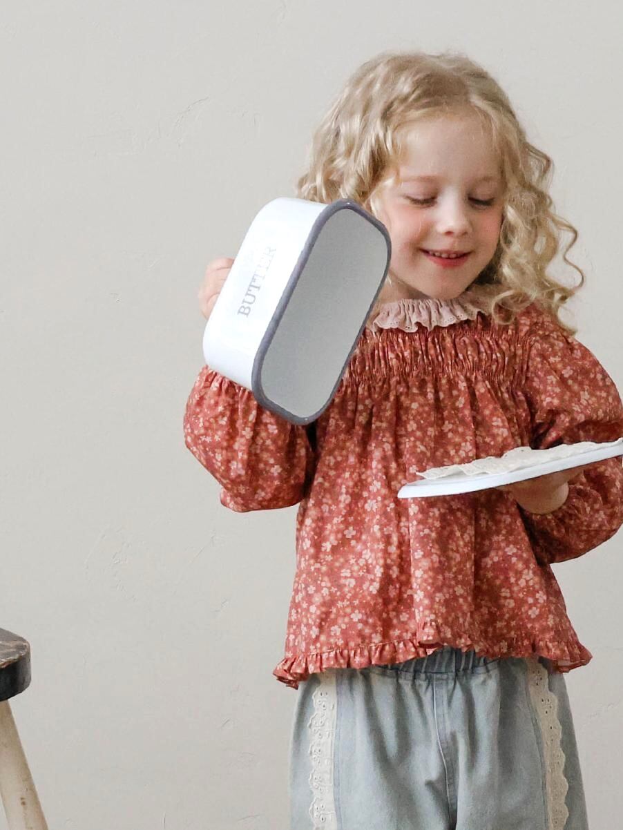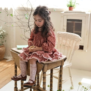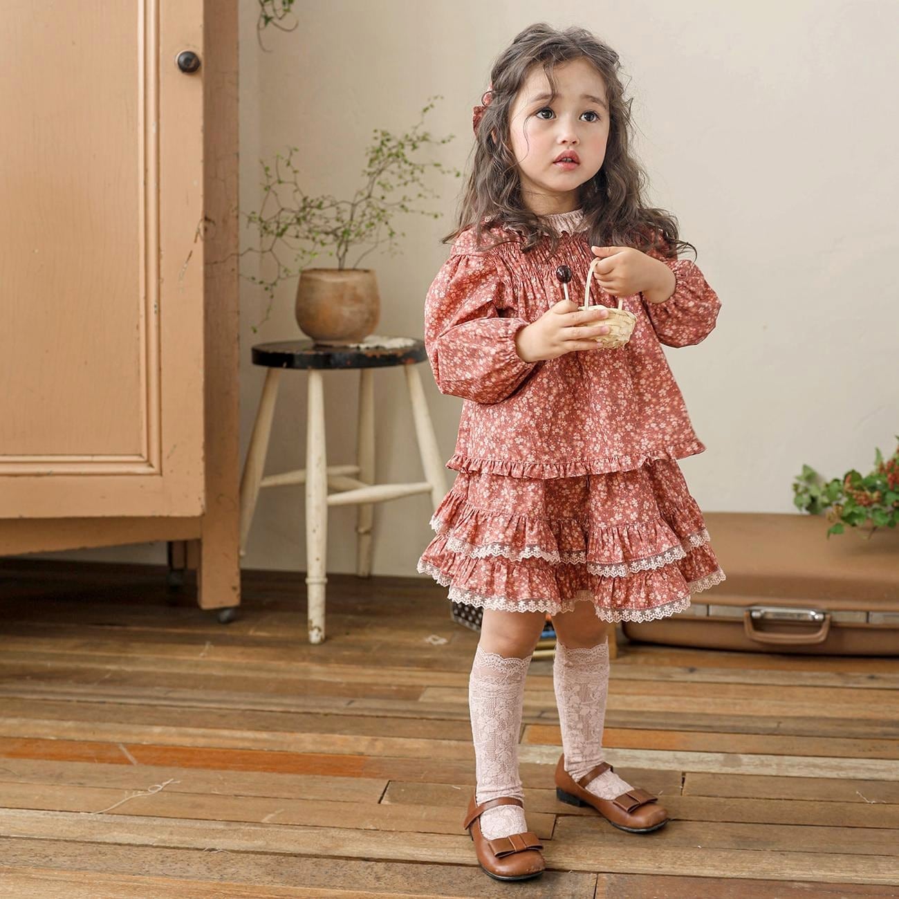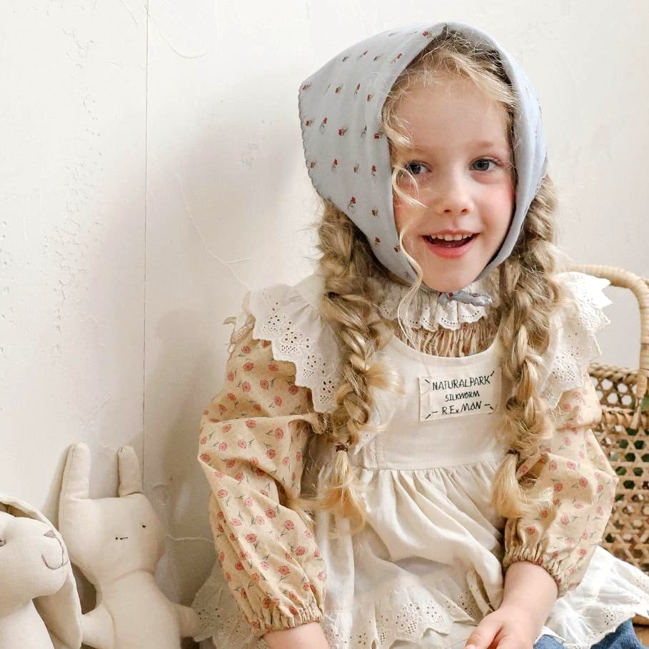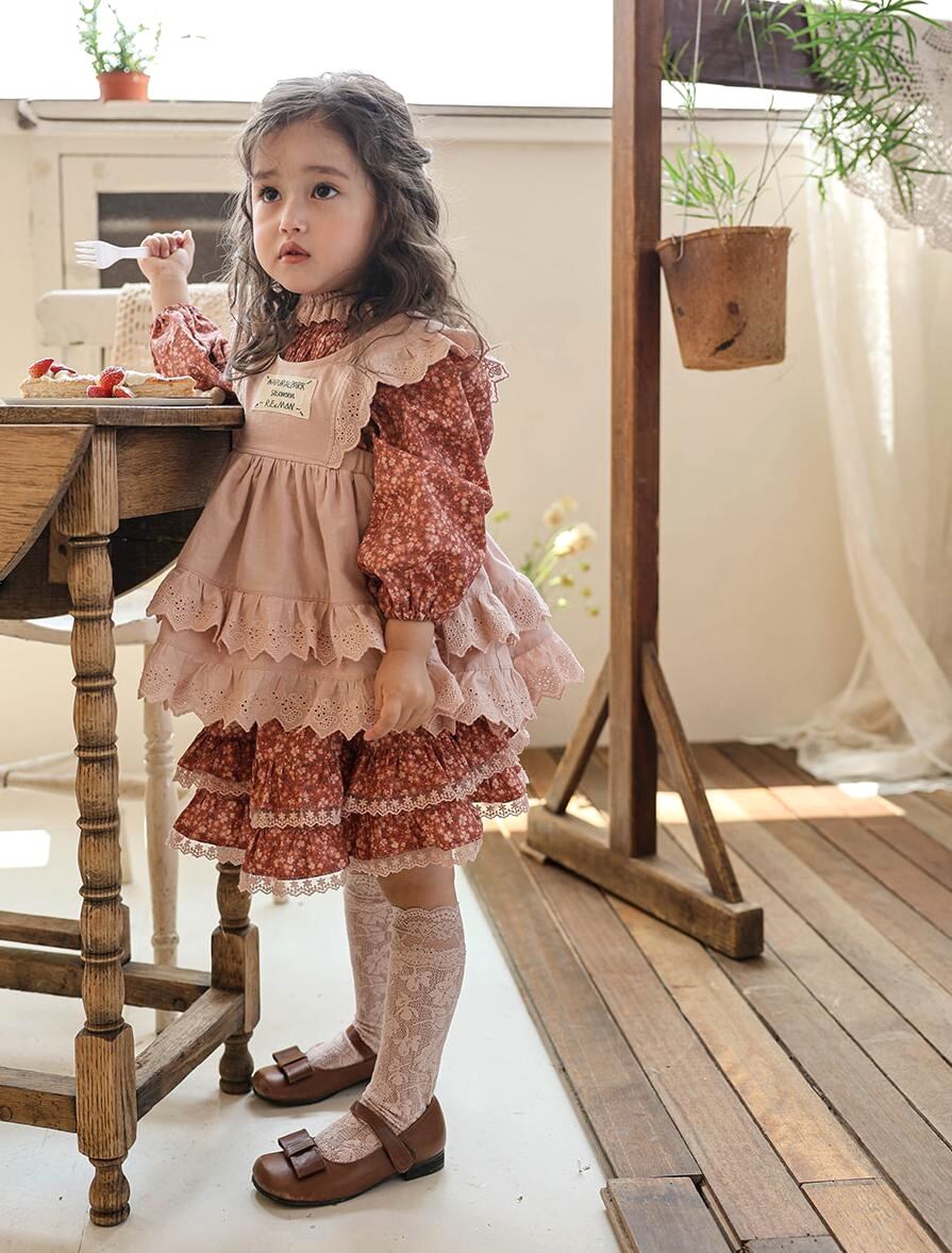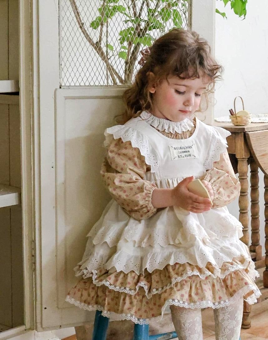 花柄のコットン素材をベースにスモックレースが全体の雰囲気を格上げしてくれます。