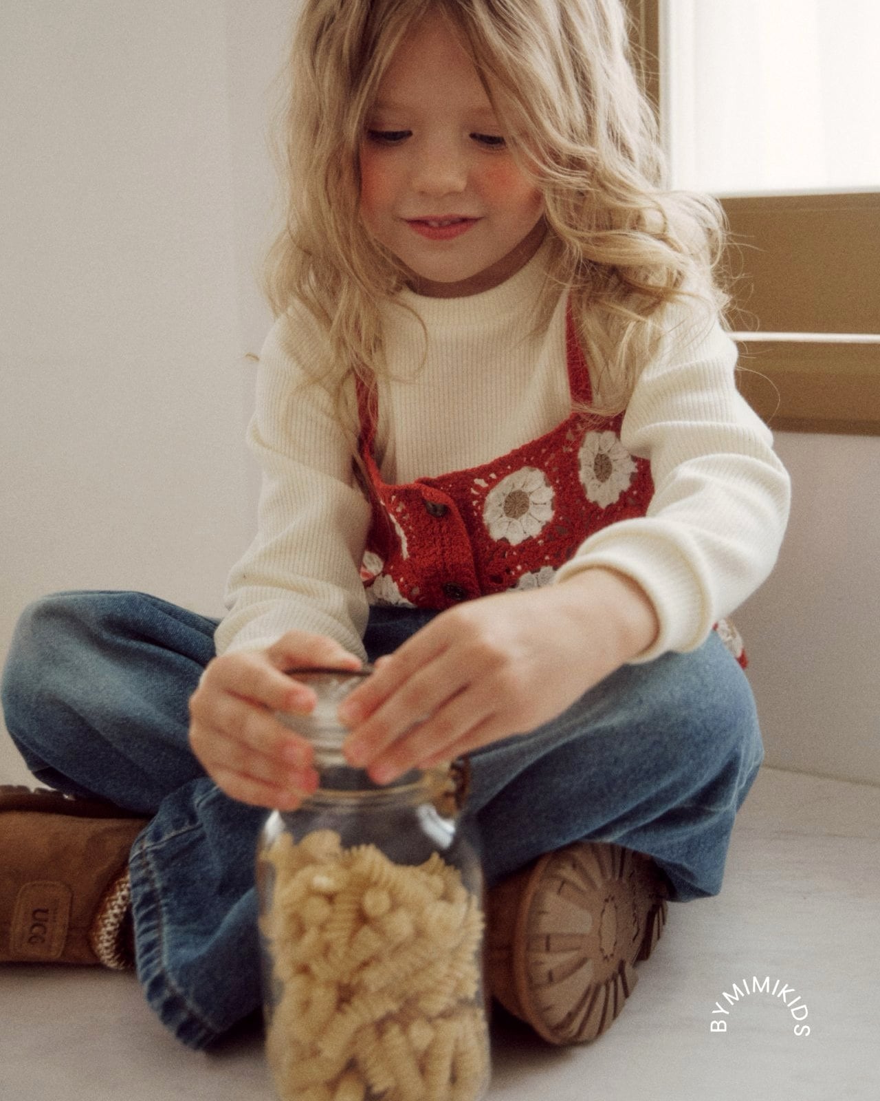 コットンデニム100%生地でワイドシルエットが可愛いデニムパンツです。