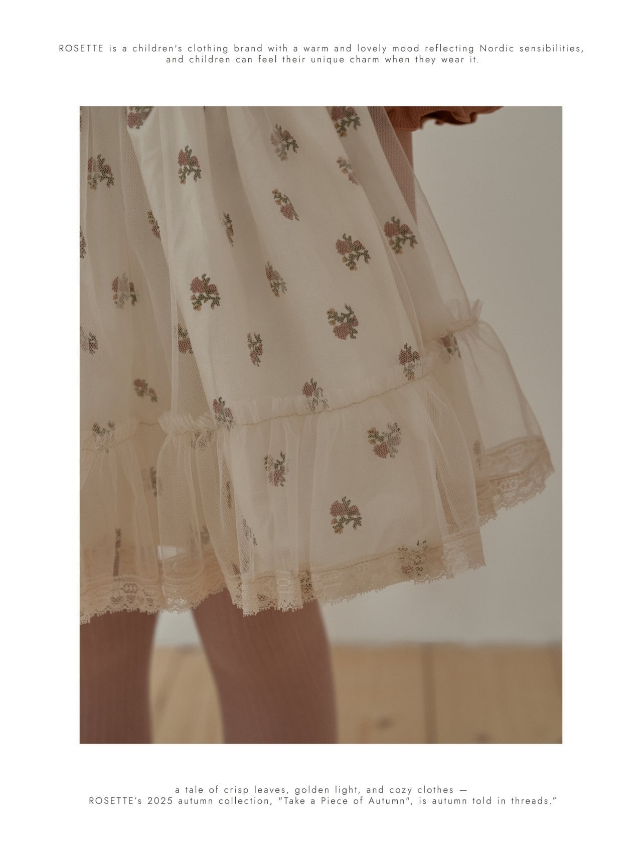 Aラインのシルエットと程よいフレア感がクラシックな雰囲気を引き立てガーリーな印象に仕上げます。