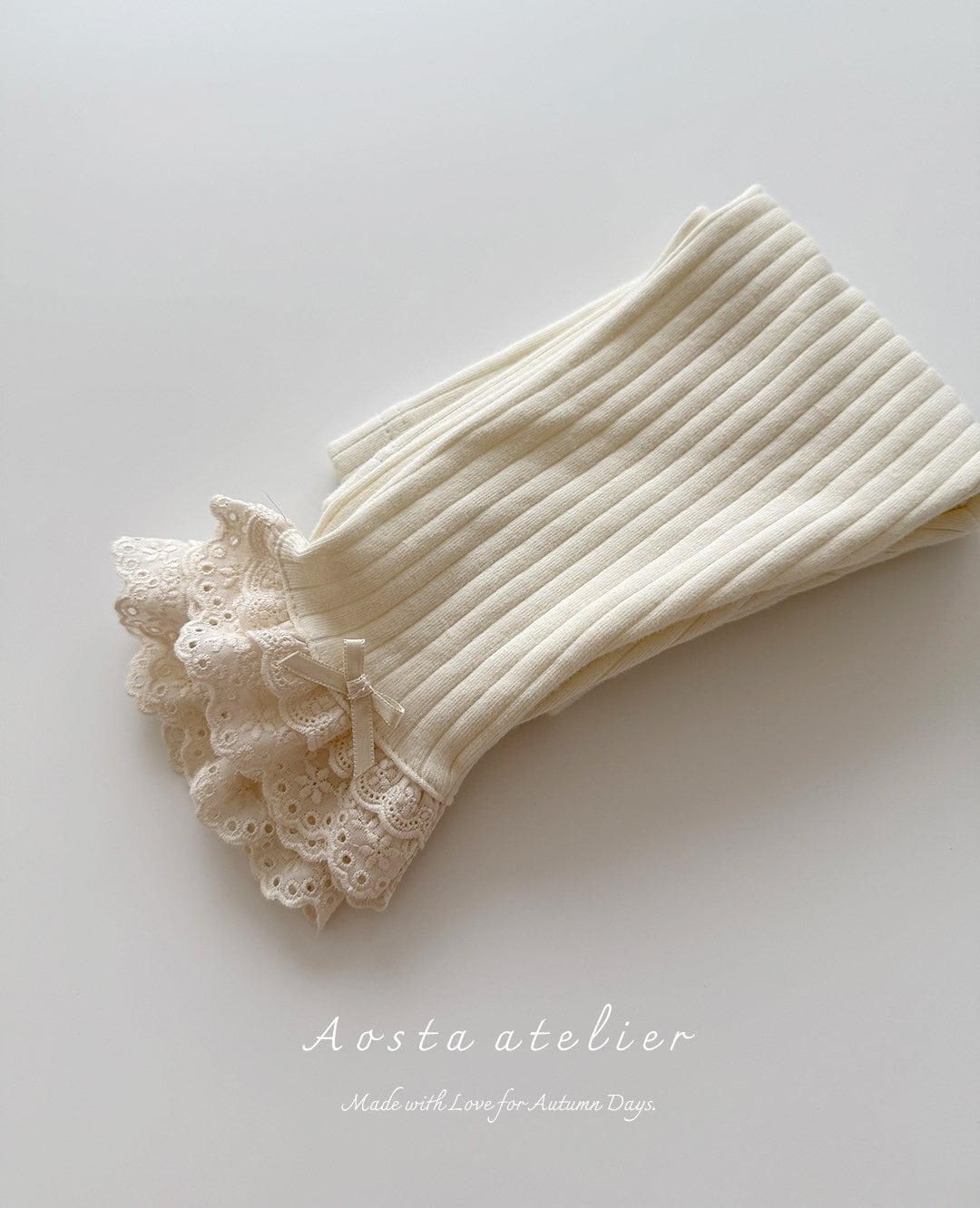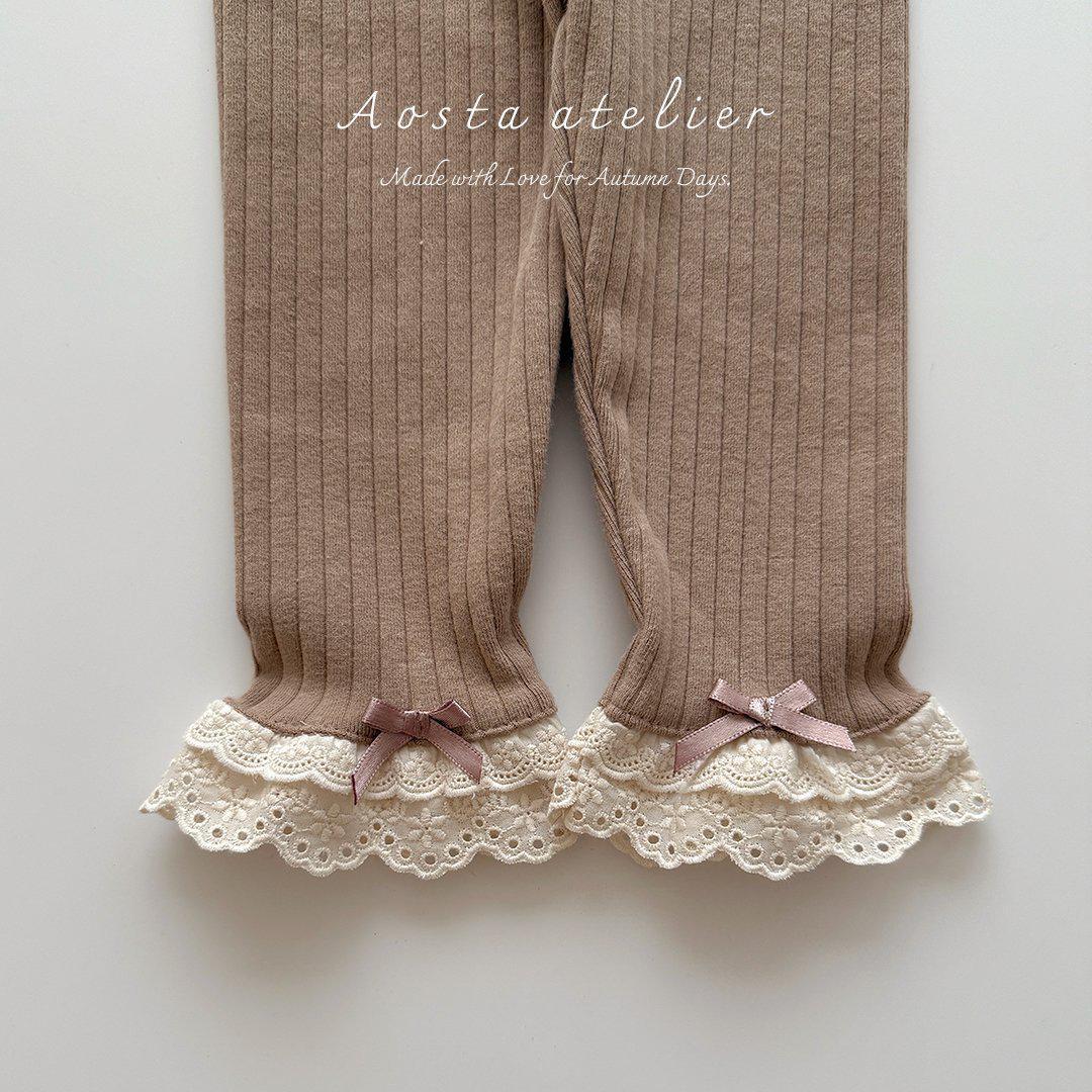秋らしいカラーにリボンの飾りと程よく体にフィットするサイジングが絶妙に可愛いレギンスです。