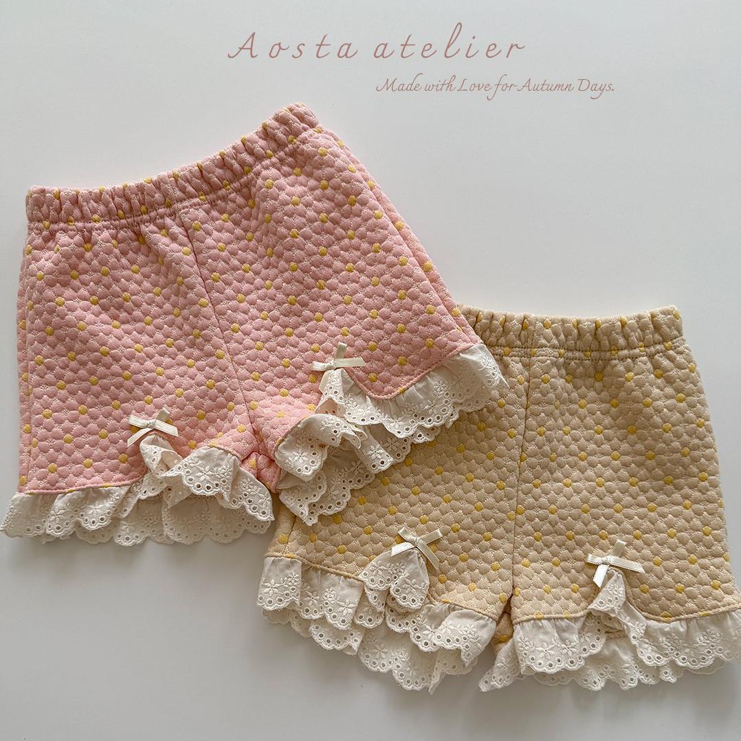 裾にあしらったレースとリボンがさりげないアクセントになっています。