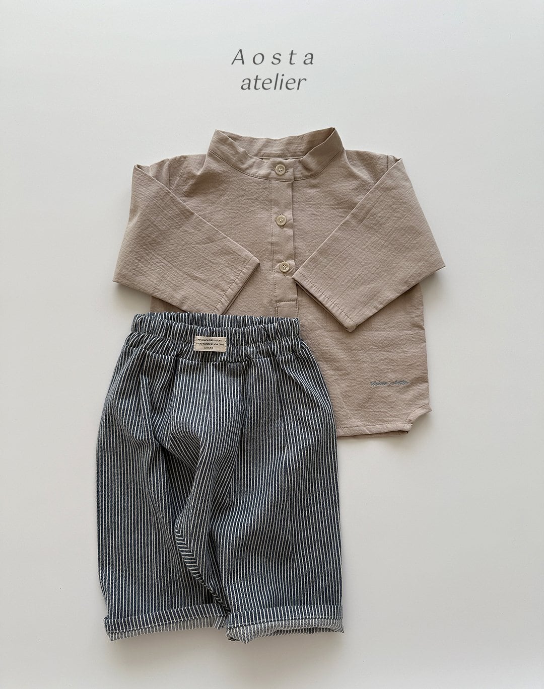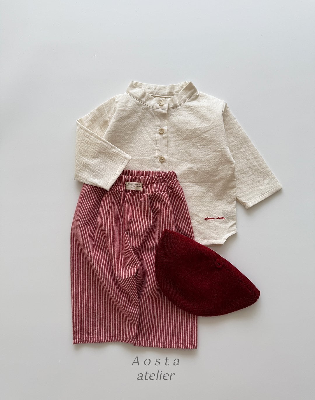 細かなストライプ柄のコットン生地に起毛をかけ柔らかな手触りとあたたかな着心地を叶えました。
