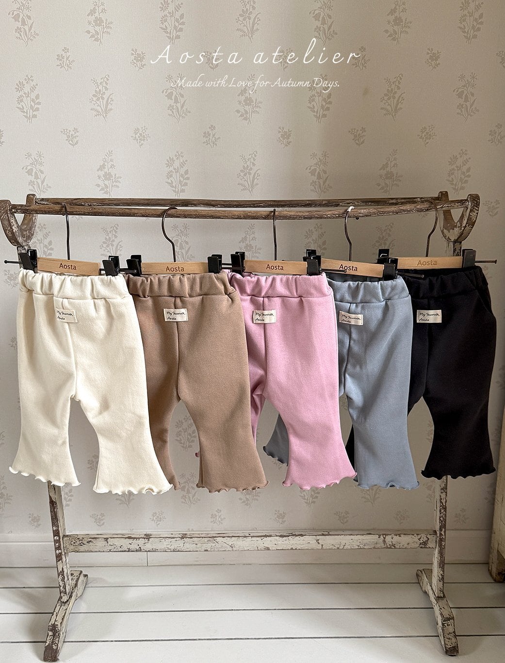 程よいフレアシルエットに裾にフリル、少し高めにウエスト位置を設定に裾のフリルがガーリーな印象のパンツです。