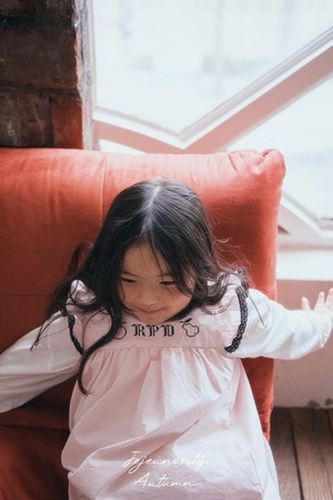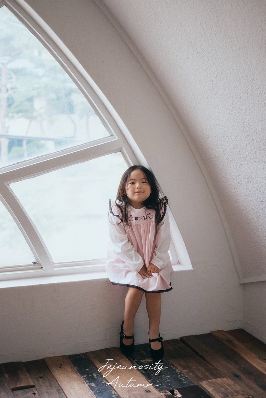 ミニ丈のワンピースにブルマを合わせるスタイルは、ジェジェの定番コーディネートです。