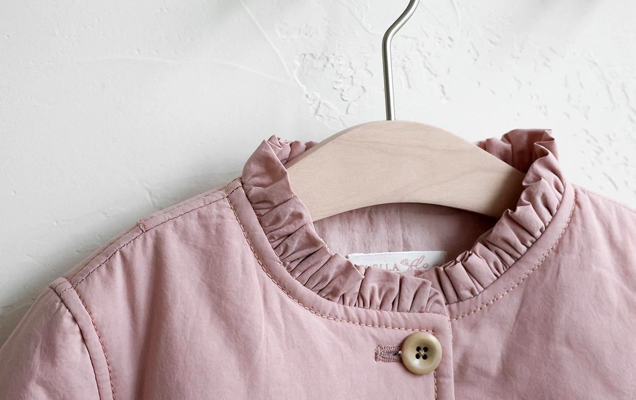 フリル襟のデザインが華やかさを添え、シンプルなコーディネートも一気に可愛らしい印象に仕上げてくれます。