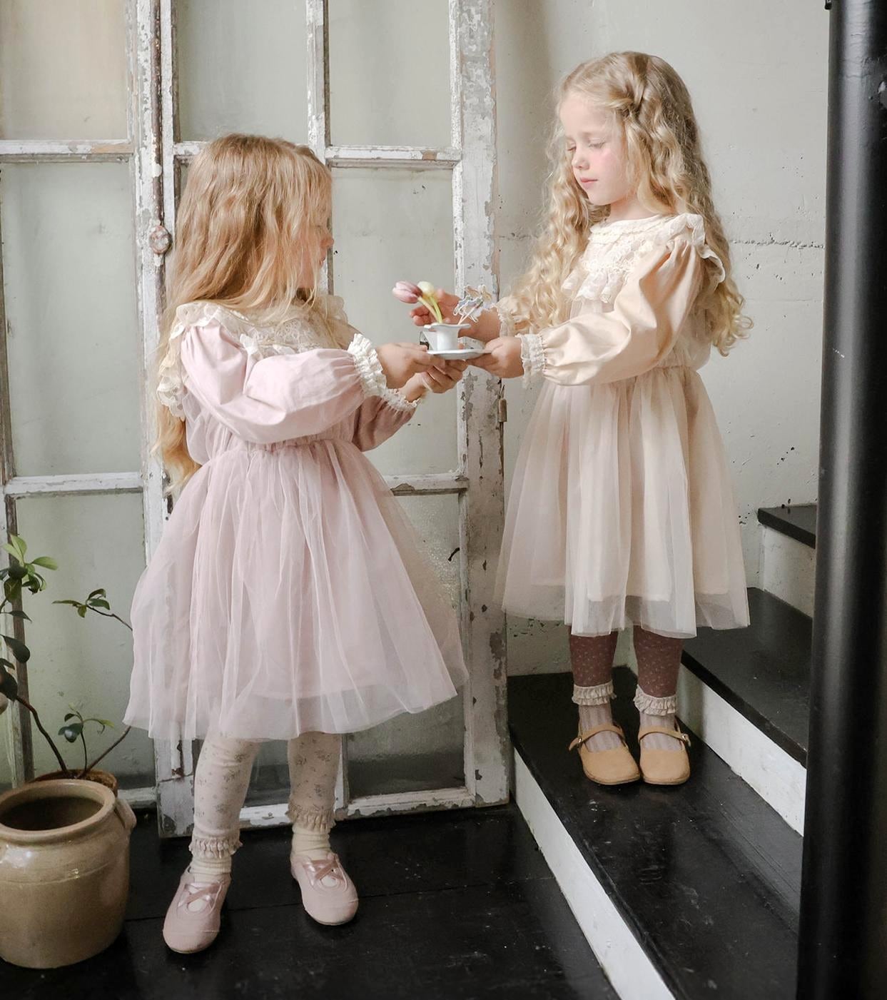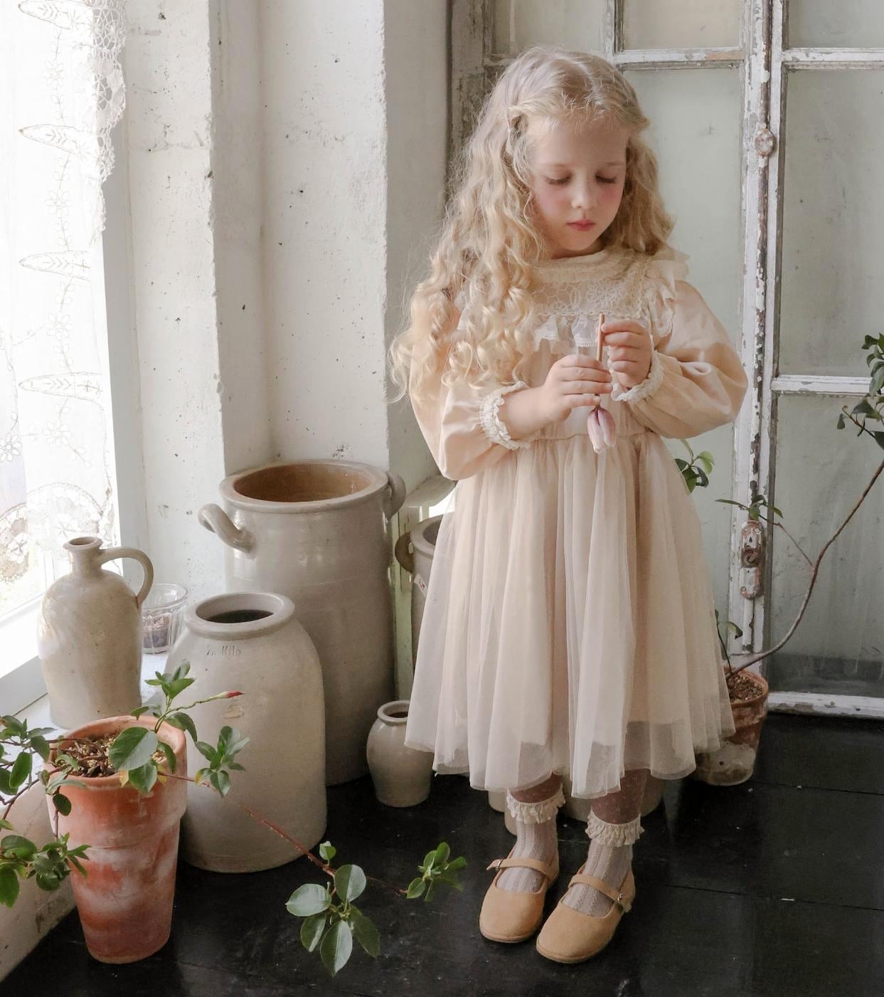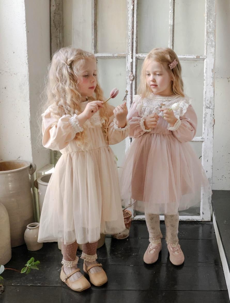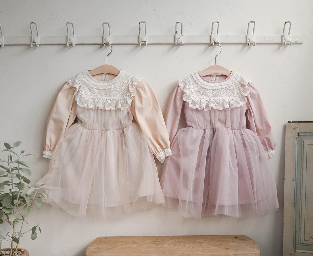 おんなの子の好きをつめこんだレースとチュールスカートが目を惹くワンピースです。