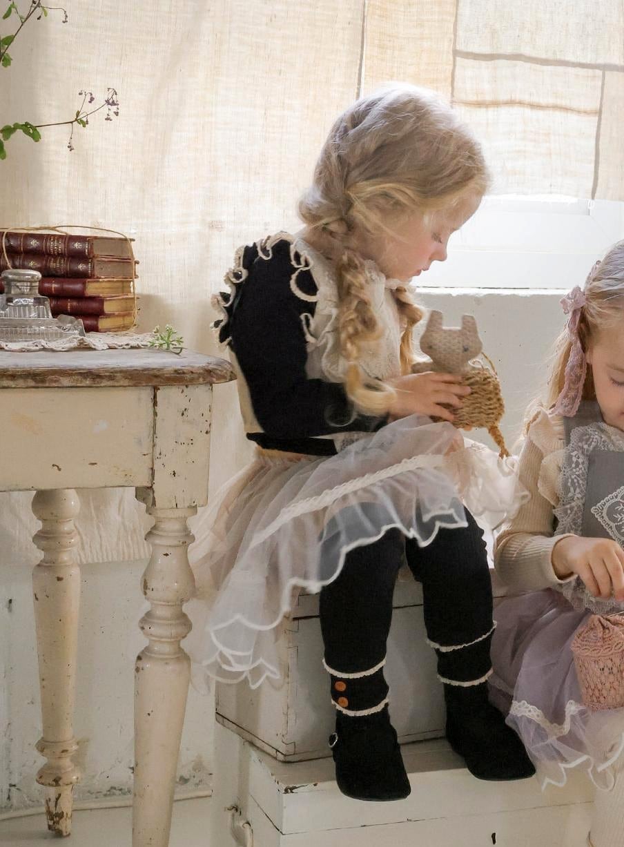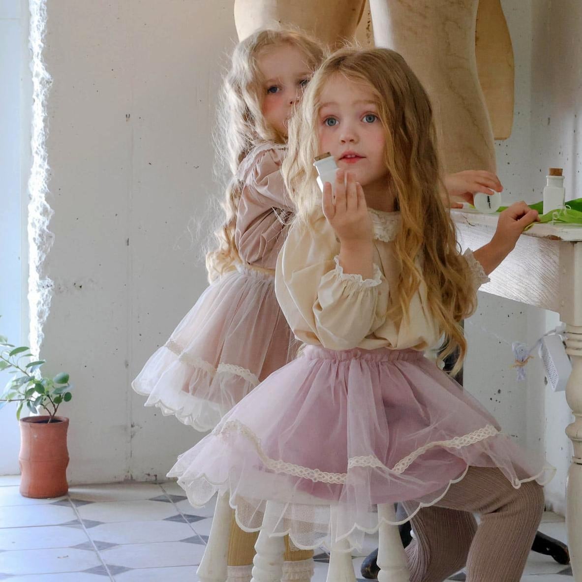 柔らかなチュール素材を重ね合わせ軽やかに揺れるデザインが女の子らしい雰囲気を引き立てます。