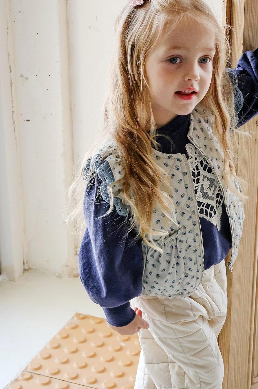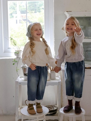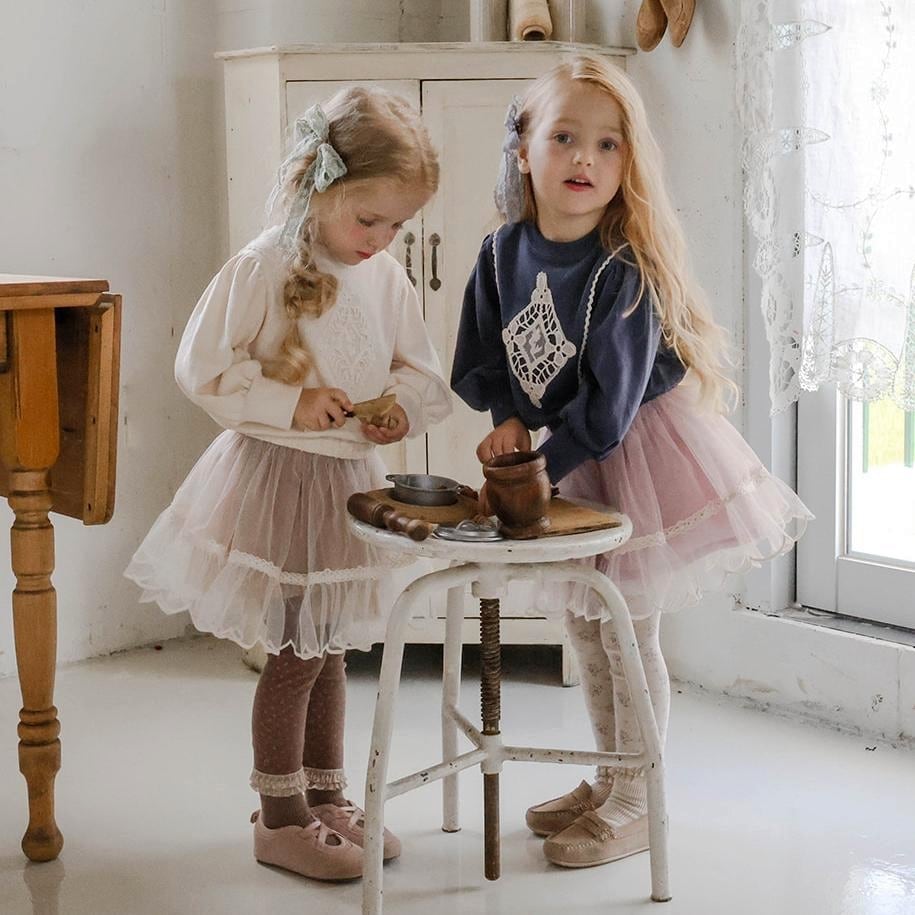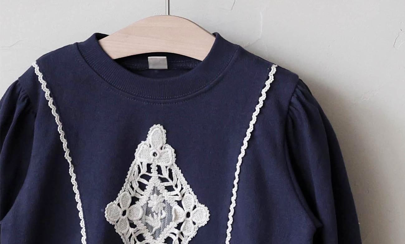 フロントのレースが愛らしいアクセントになったガーリーなスウェットです。