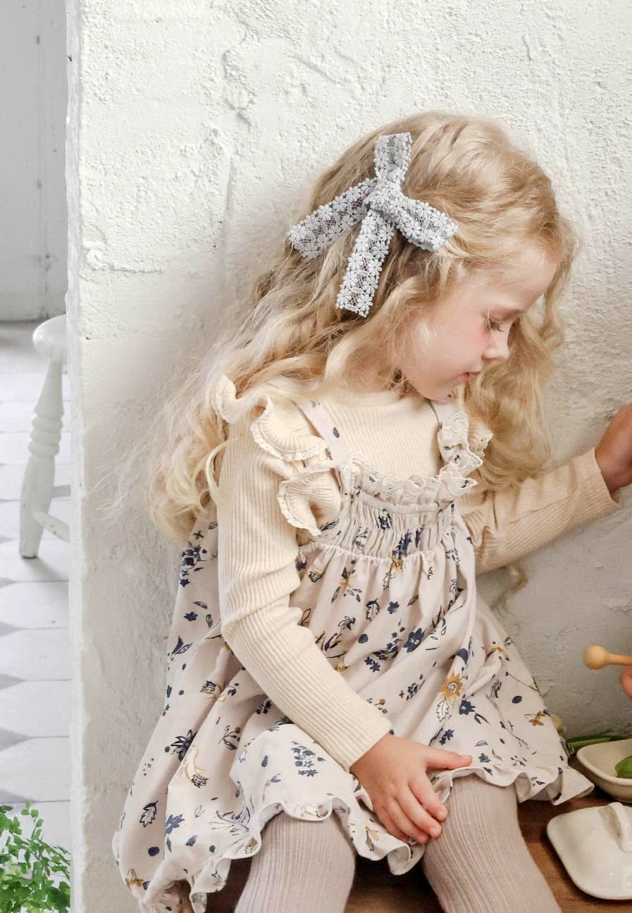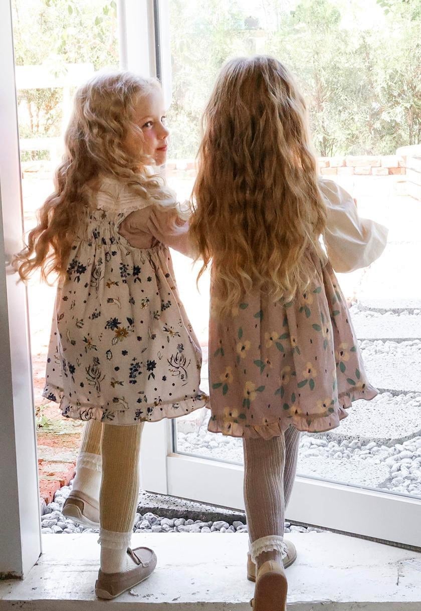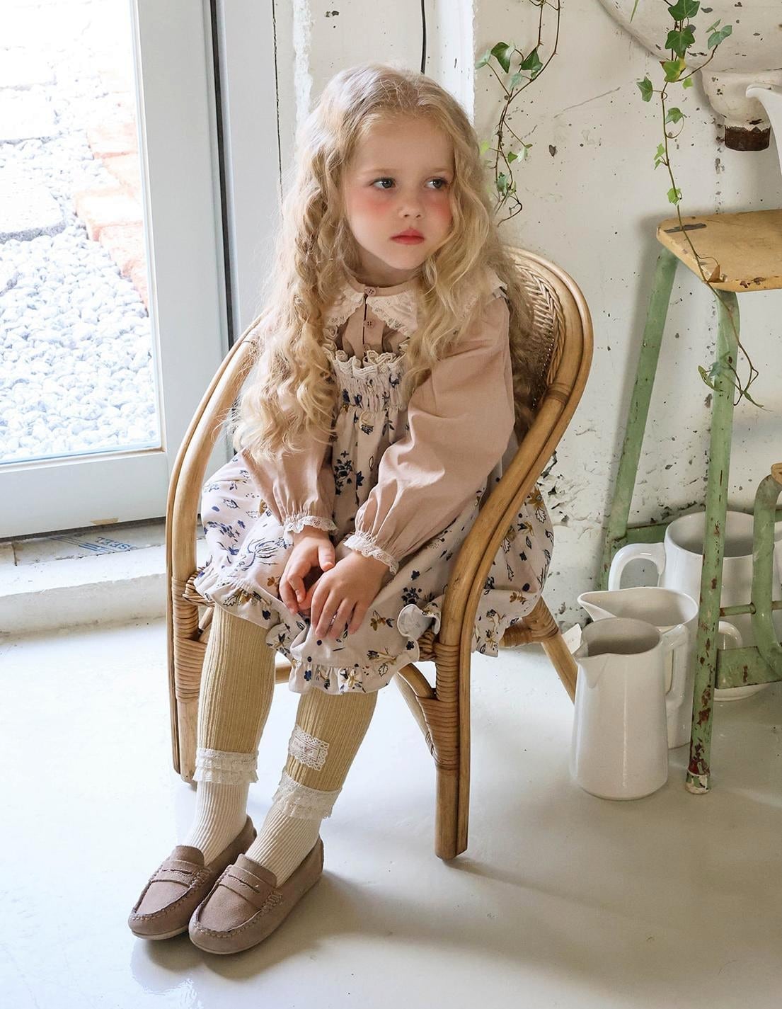 ふんわりとしたシルエットに華やかなフラワーパターンをあしらい女の子らしい愛らしさを引き立てます。