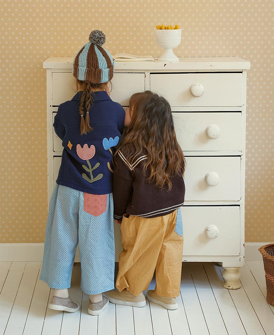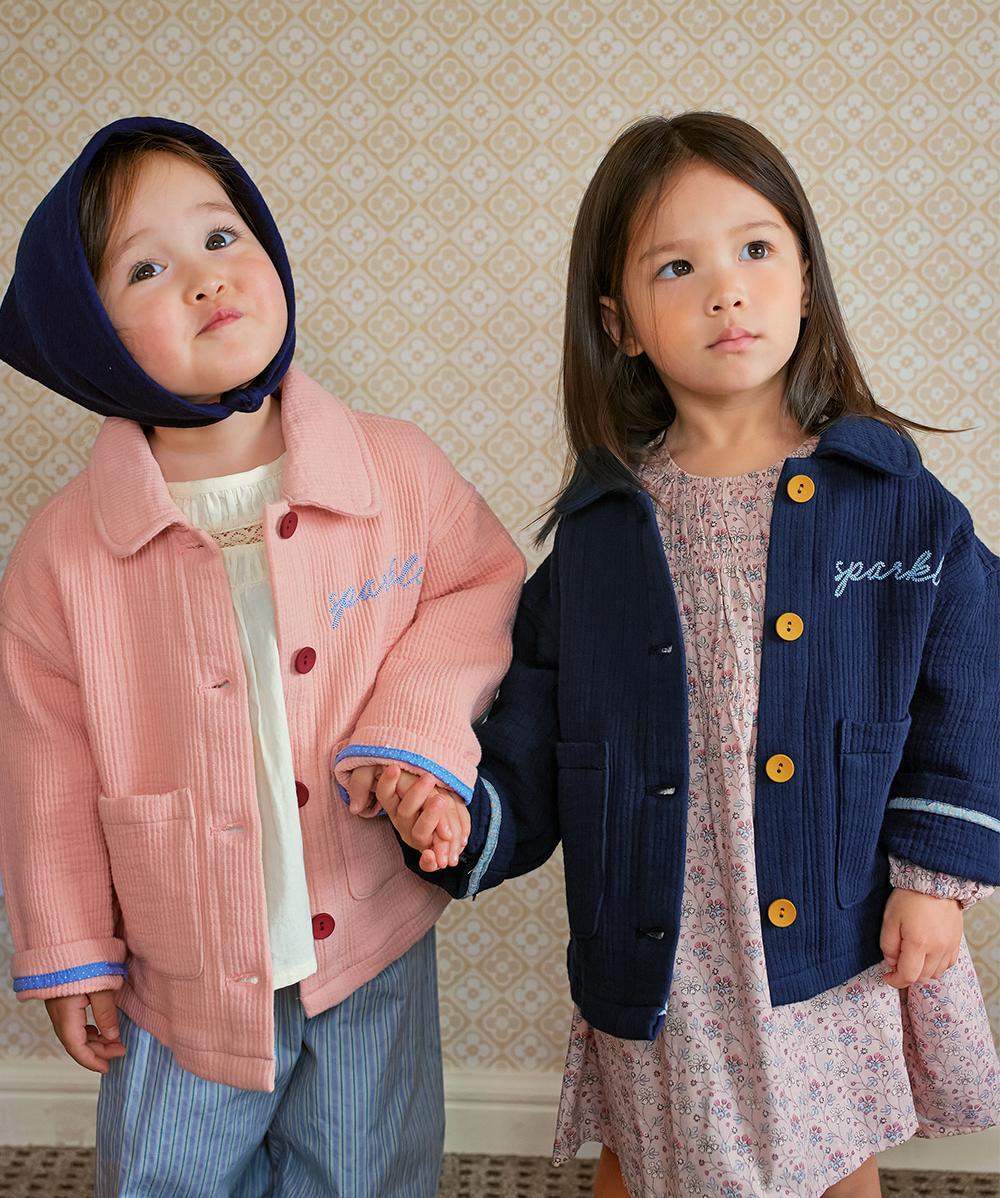 袖の内側には刺繍と同色の生地でバインディングを施しており、袖を折り返して着ても可愛らしく決まります。