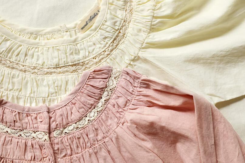 袖と身頃全体に細かなギャザーを寄せることで、着用時のシルエットがよりふんわりと可憐に映えます。