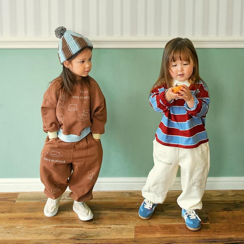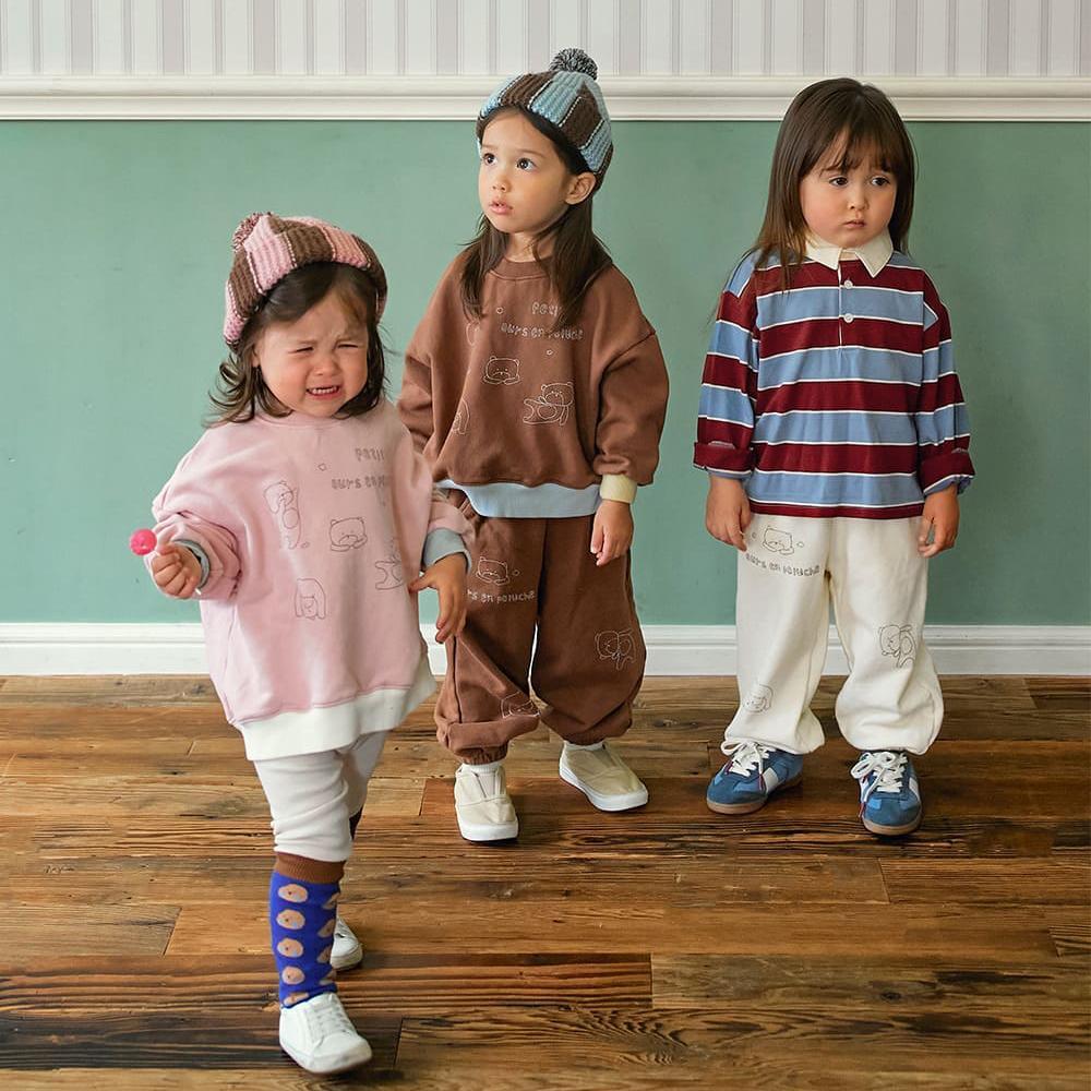 柔らかな色合いでさまざまなアイテムと合わせやすく同じ素材のジョガーパンツとセットアップで着れば、登園にぴったりのカジュアルで可愛らしいコーディネートが完成します。