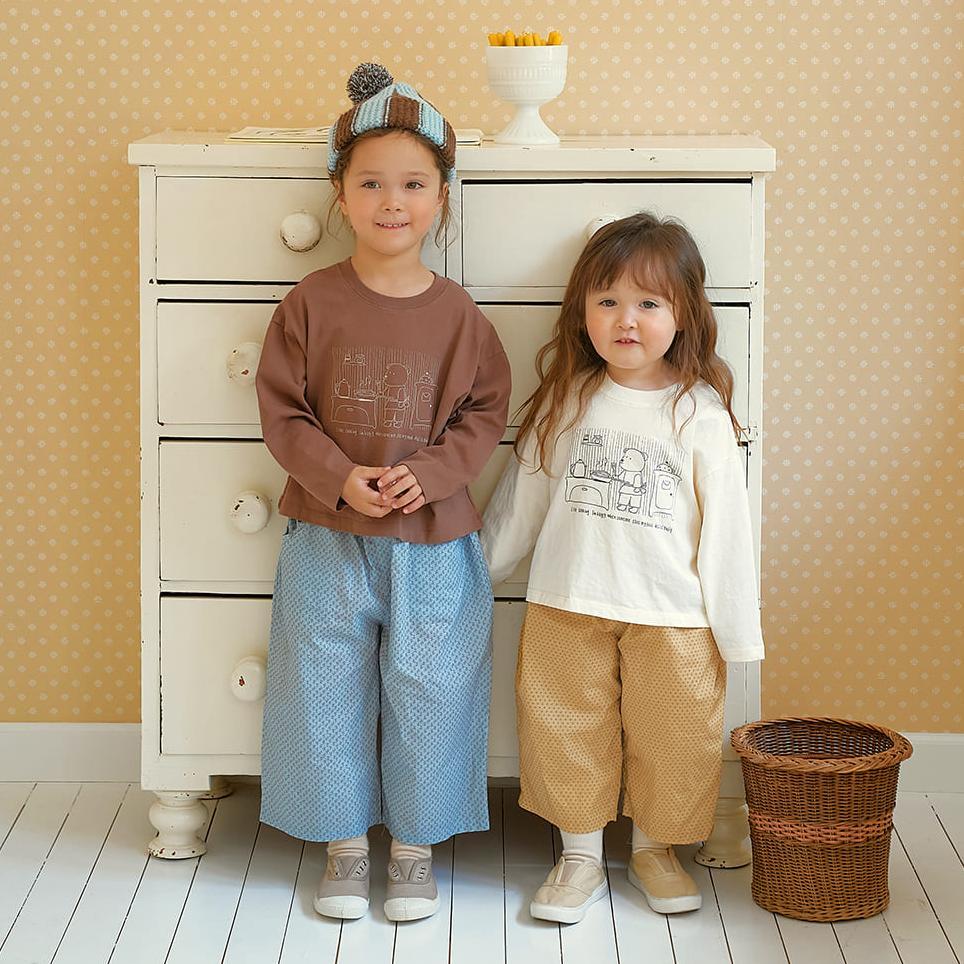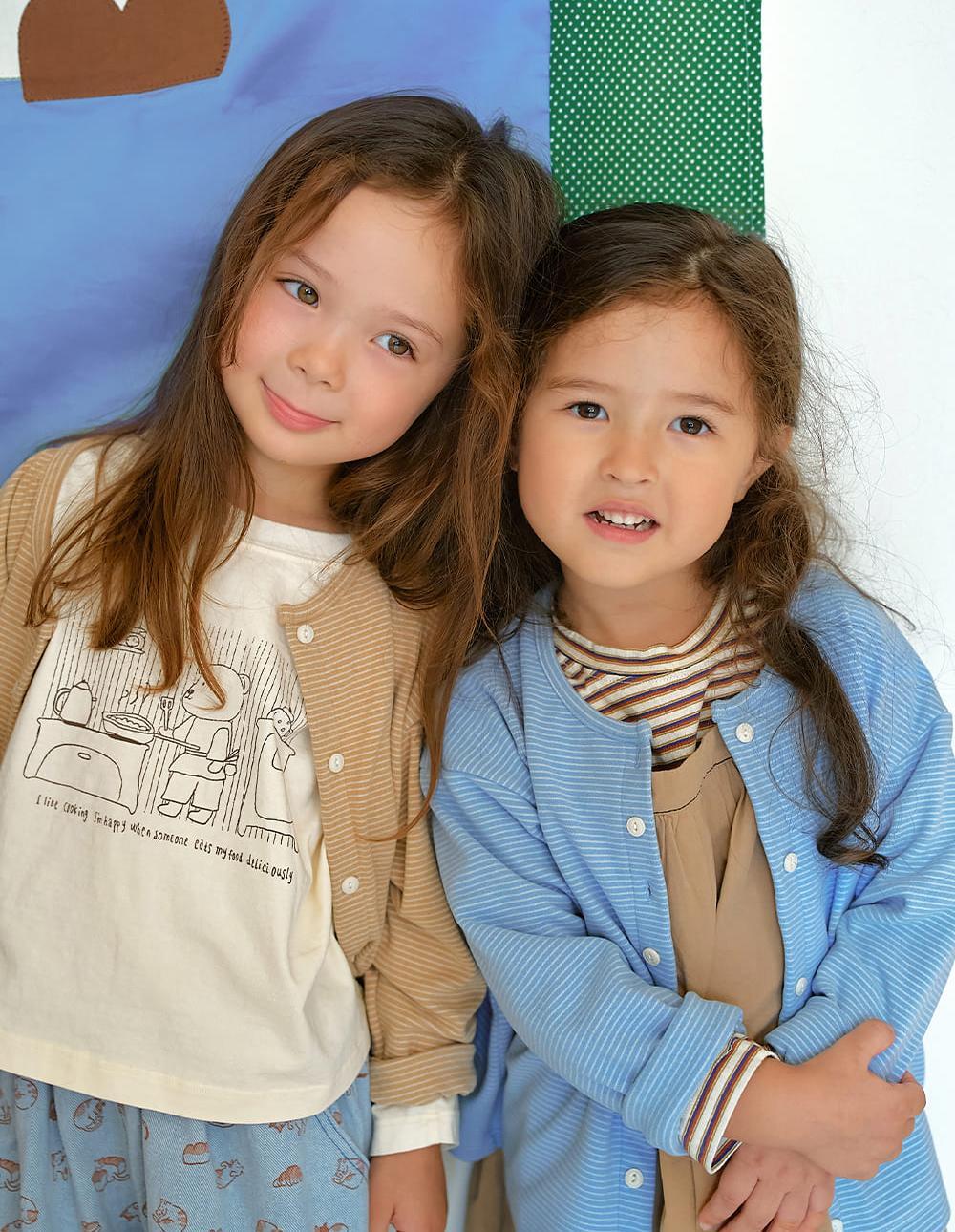 愛らしいイラスト風のモチーフと、手書き風のロゴプリントが可愛いアクセントになっています。