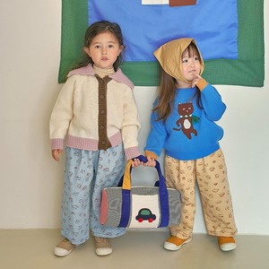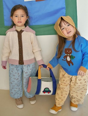 しっかりとしたコットンツイル素材を使用しつつワイドシルエットで仕立てているためお子さまも動きやすく快適に着用いただけます。