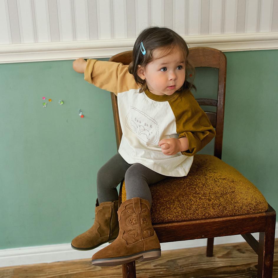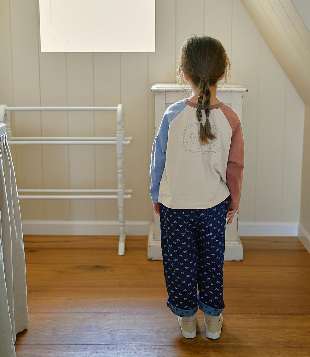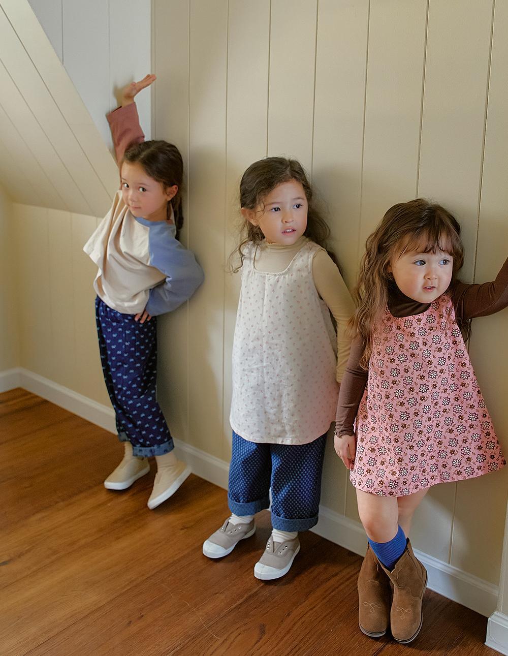 前後どちら向きでも着用できるデザインでアンバーならではのプリントをあしらい、愛らしい雰囲気をプラスしました。