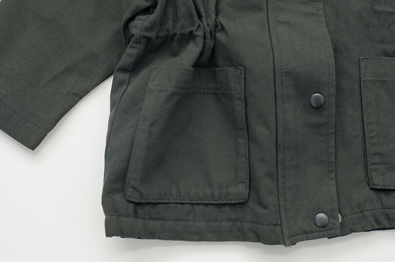 キルティング裏地付きで保温性も備えたハーフジャケットは秋の落ち着いた雰囲気を引き立てるおすすめの一枚です。
