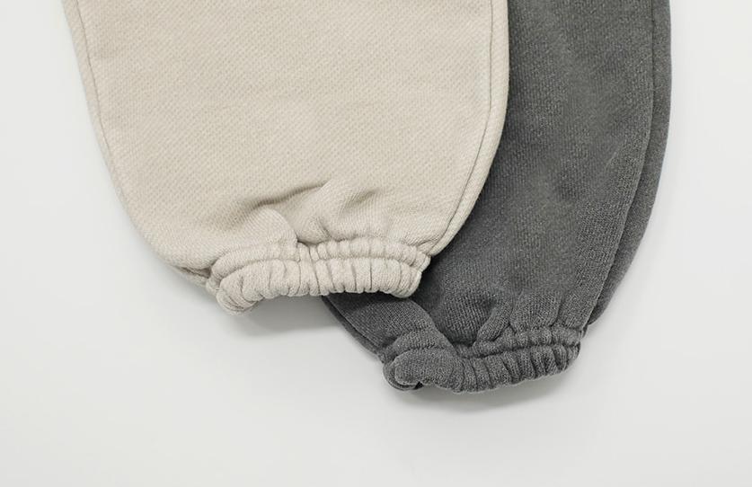 ピグメント染めならではの自然な色あせ感が魅力のジョガーパンツでカジュアルな雰囲気を演出しながら裾を軽く絞ったデザインが毎日の着こなしにぴったりです。