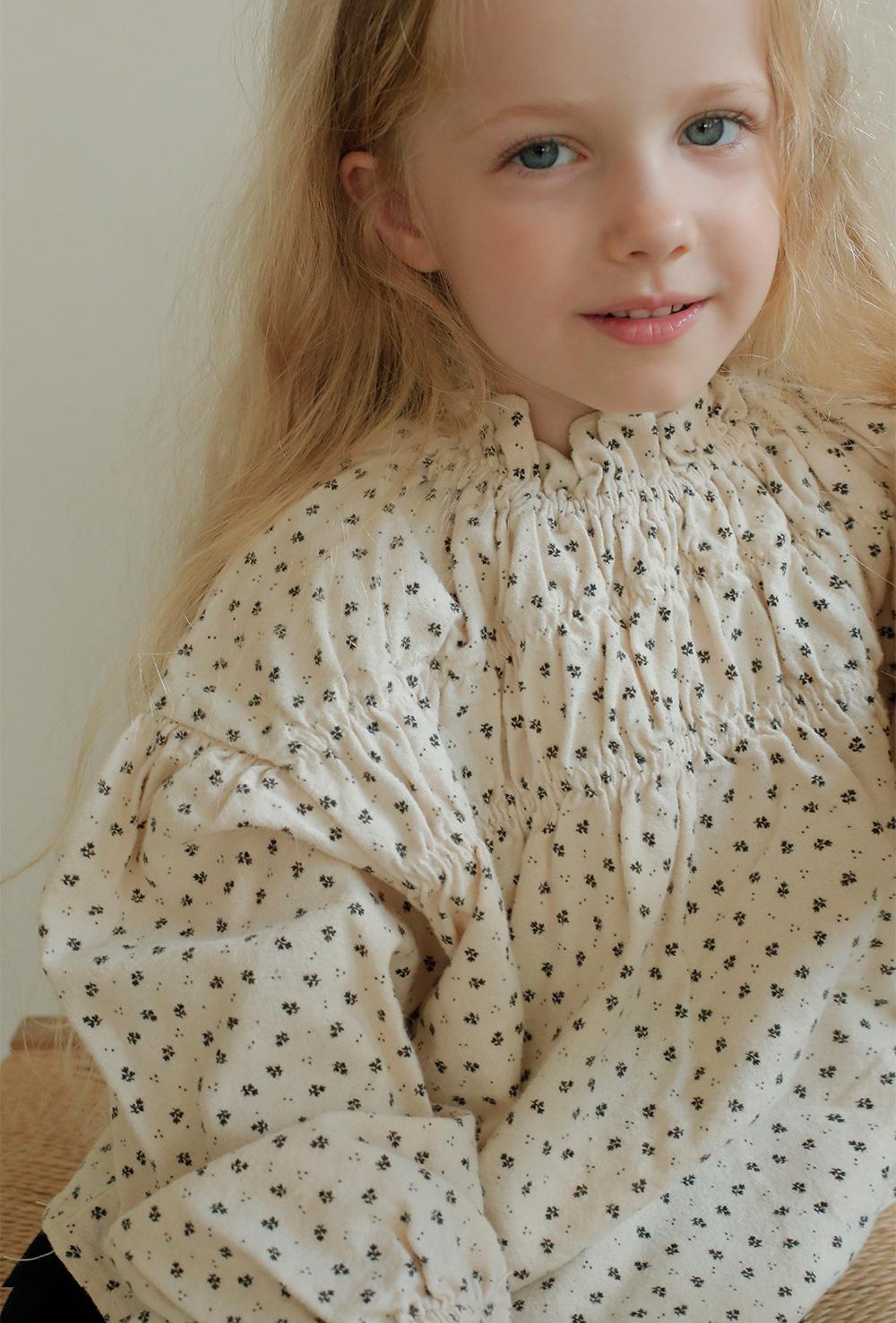 ネックラインと胸元にはさりげないシャーリングを施しやわらかなゴムで仕上げることでロマンティックな印象と快適な着心地を両立しました。