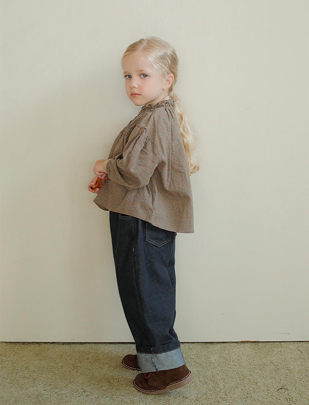 しっかりとした生地感のセルビッジデニム風素材で仕立てクラシックなムードのデニムパンツです。