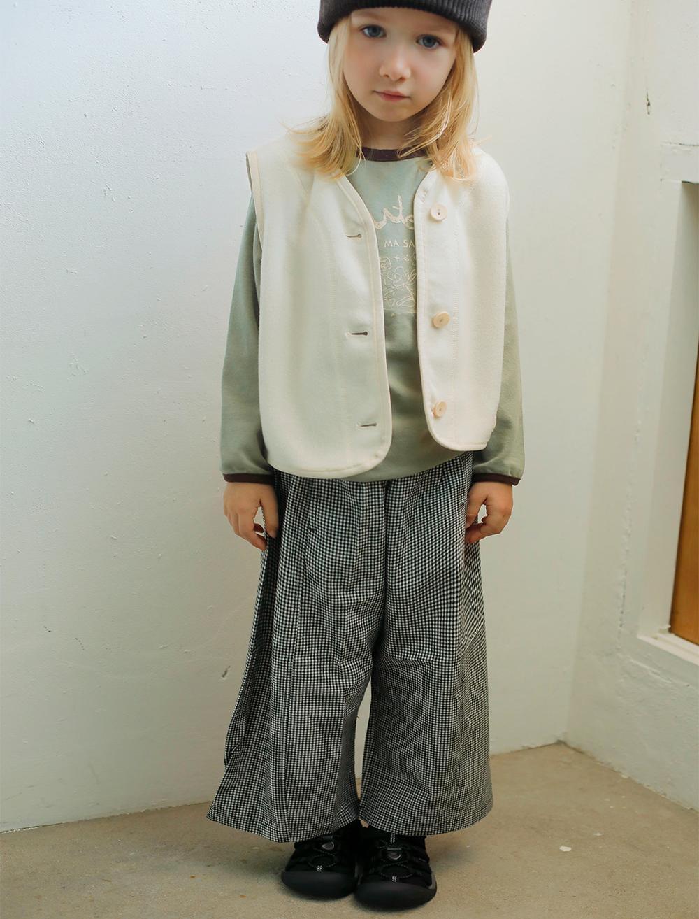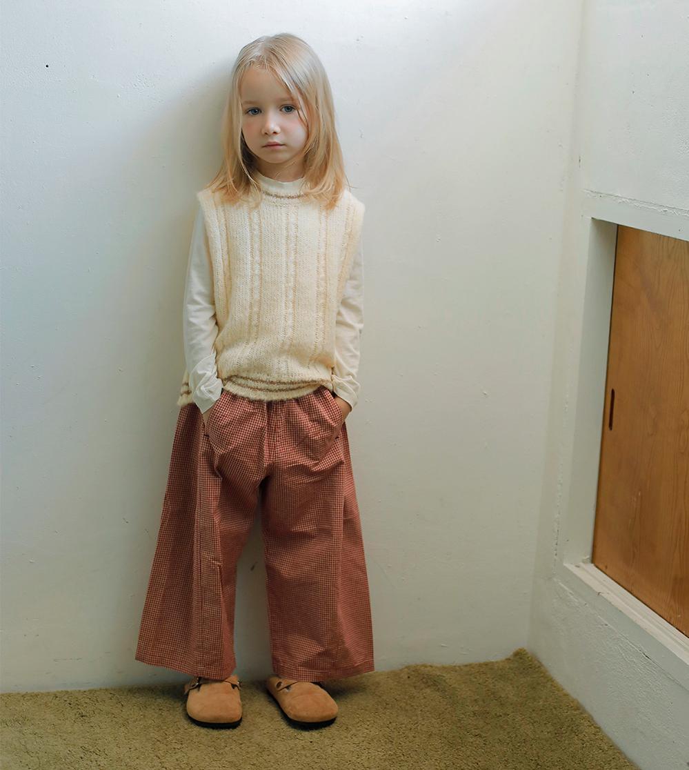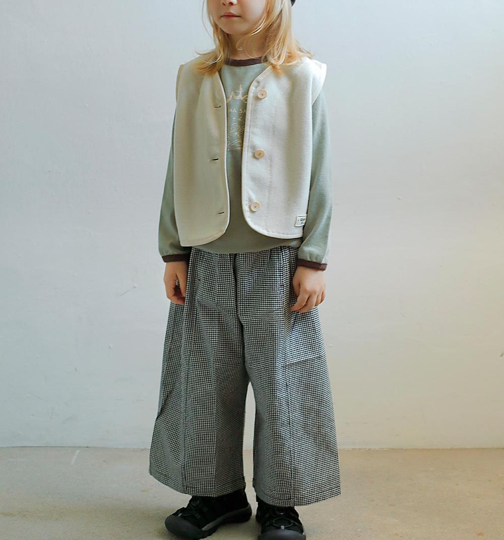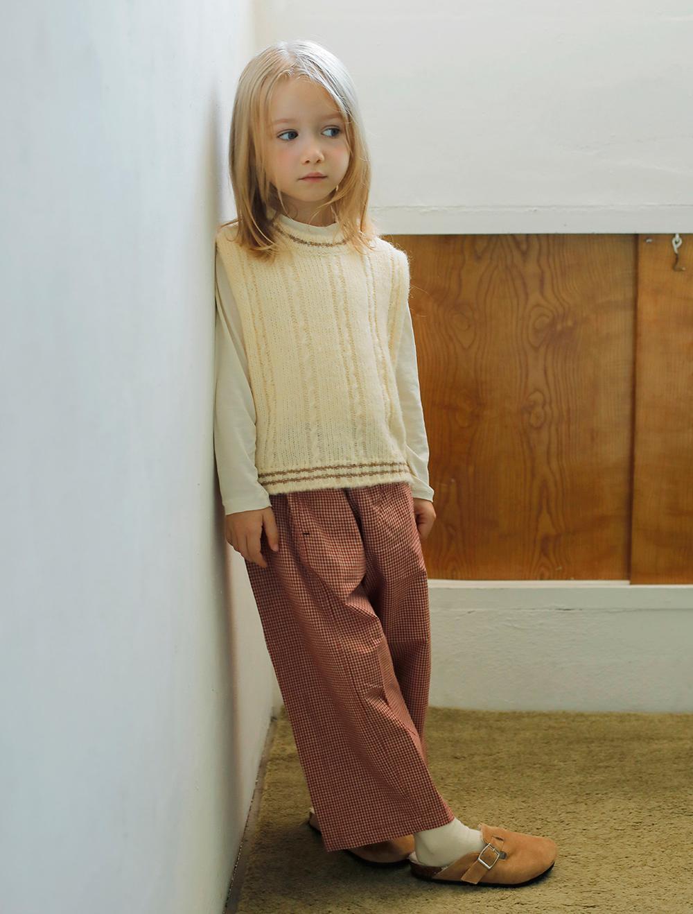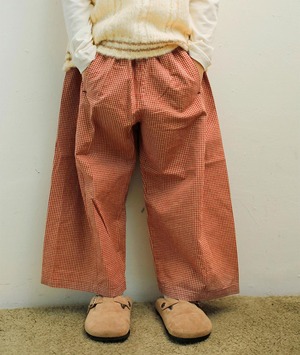 やわらかな手触りと上質な組織感が特徴のチェック柄素材で仕立てたパンツは前後に入った切り替えラインにより美しいシルエットが引き立つセミワイドフィットデザインです。