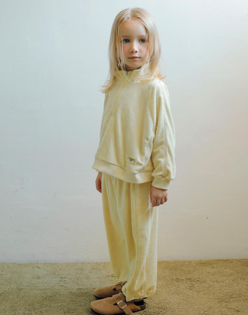 明るく元気なライトイエローと落ち着きのあるネイビーの2色展開でジョガーパンツやデニムパンツなど、さまざまなボトムスと合わせやすく日常のカジュアルコーデにぴったり。