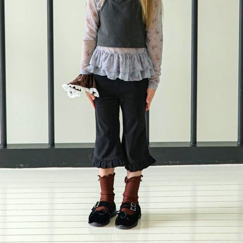 裾のフリルデザインとフレアのラインが洗練された印象のパンツです。