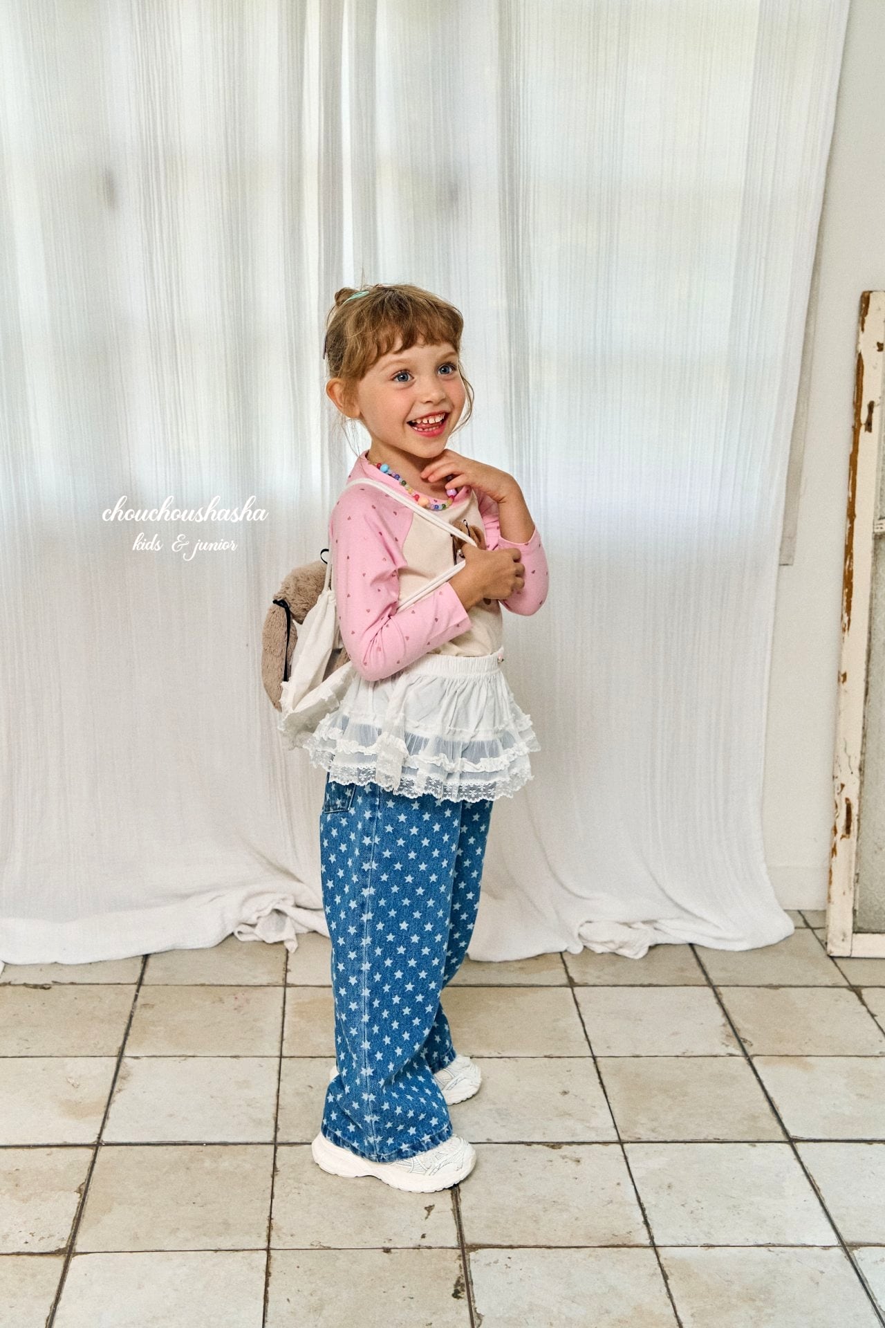 ガーリーな雰囲気に愛らしさを添え、全体に星柄の抜染加工を施したデザインに仕上げました。