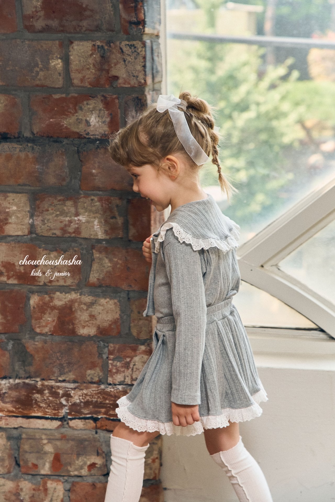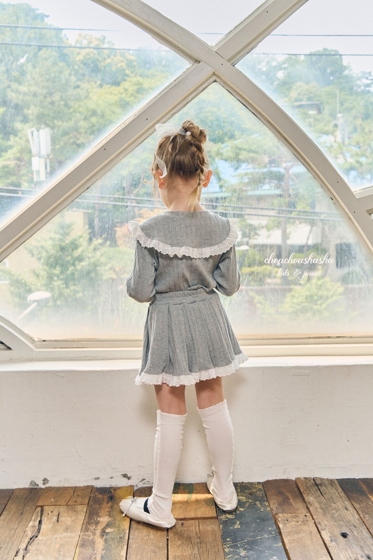 全体にプリーツを施し、裾にはギャザーをたっぷり寄せたコットンレースをあしらいました。