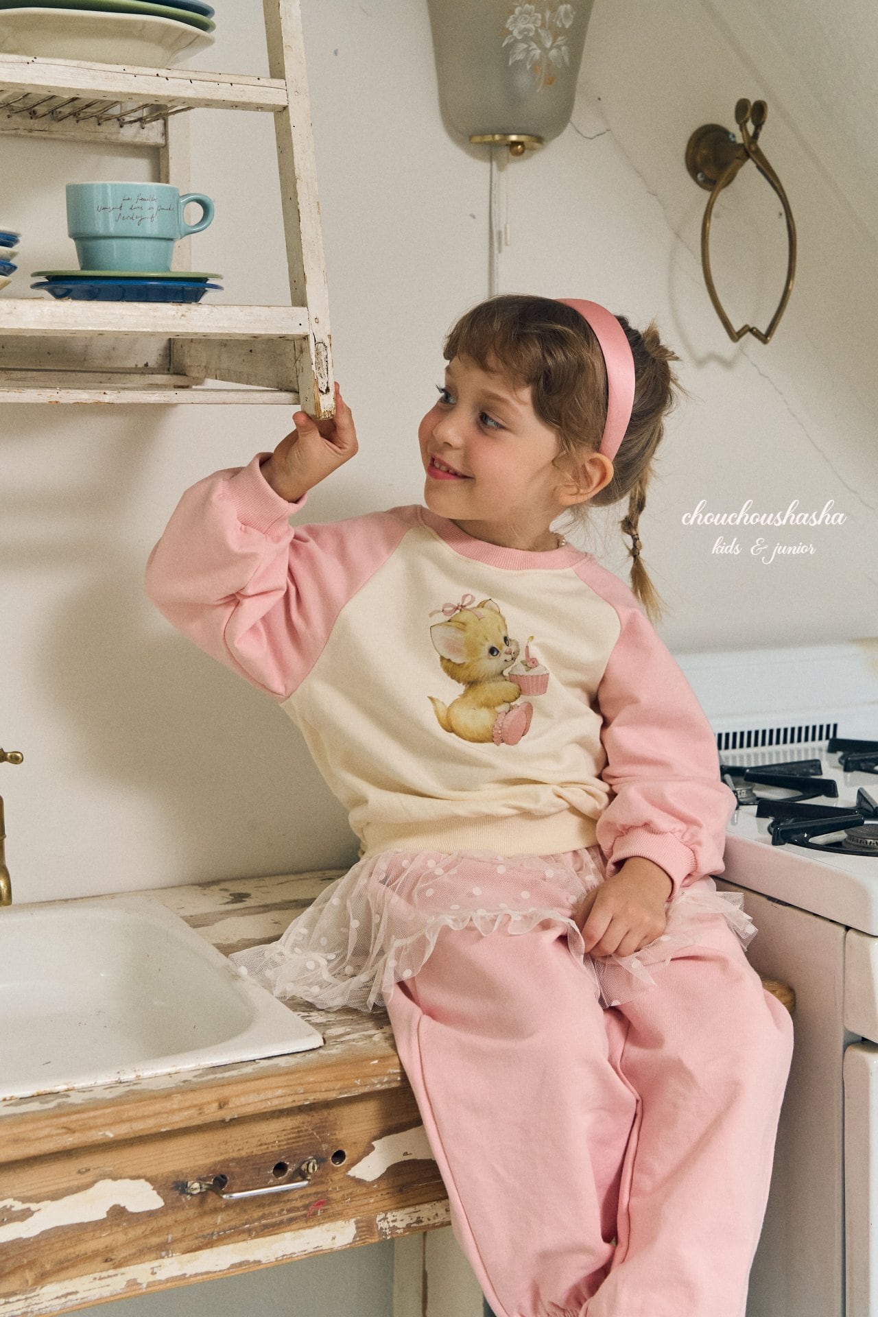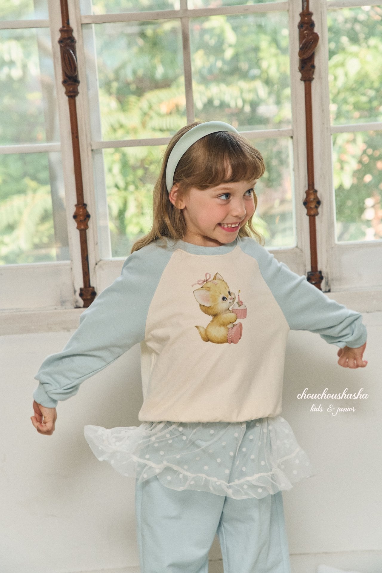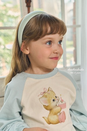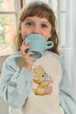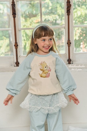 トップスはラグランデザインでキュートなイラストがポイントです。