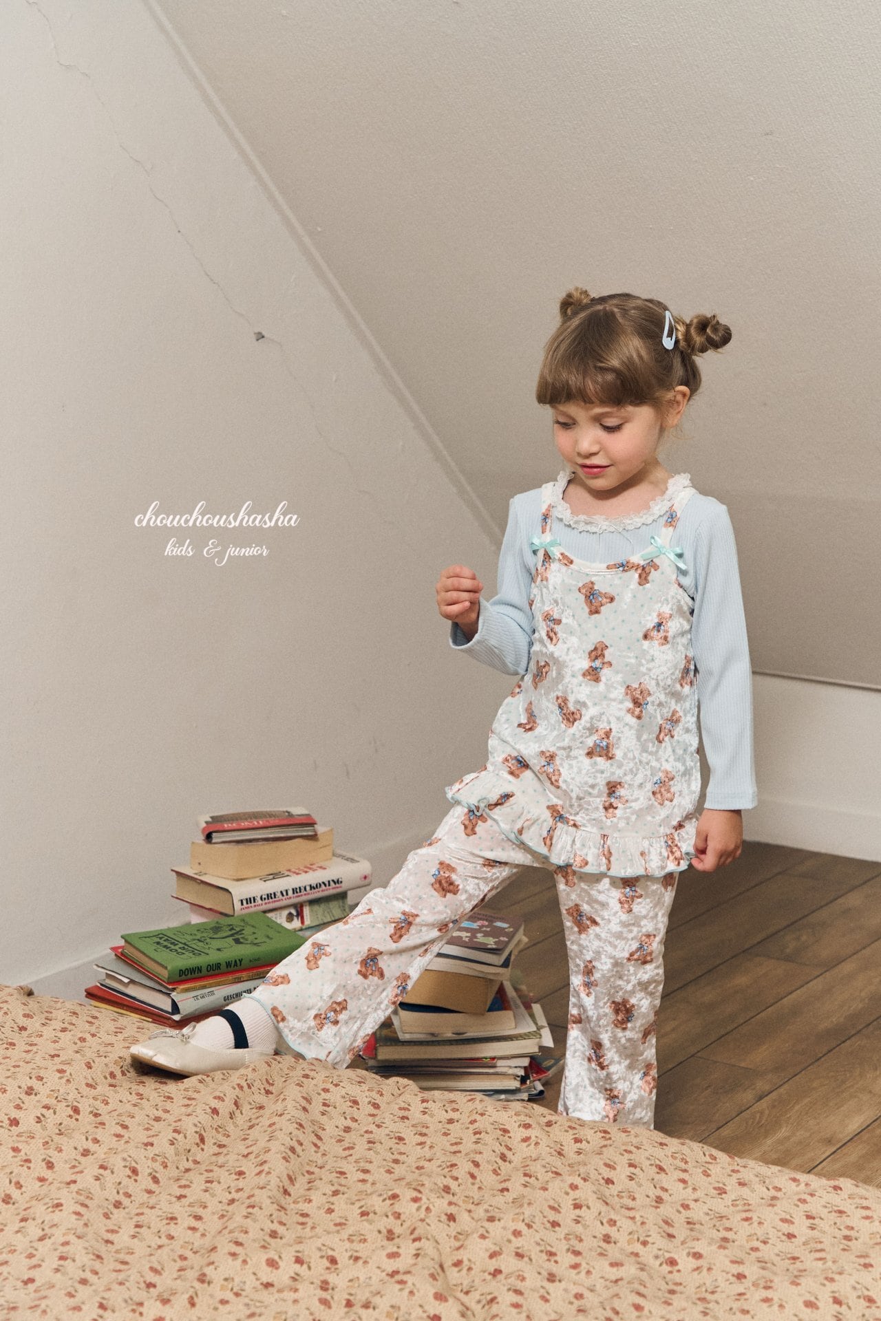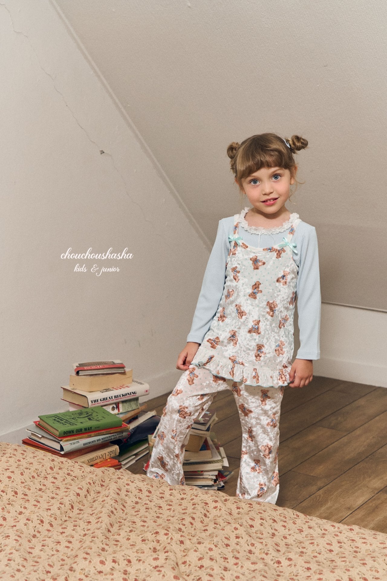 «Sold out»«chuchushasha» ベアベルベットセットアップ 2colors