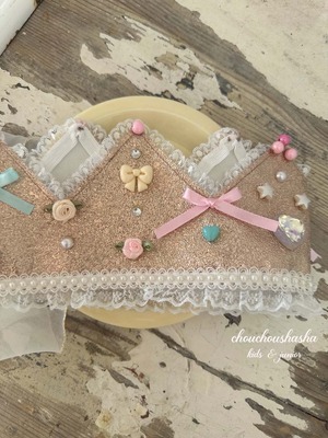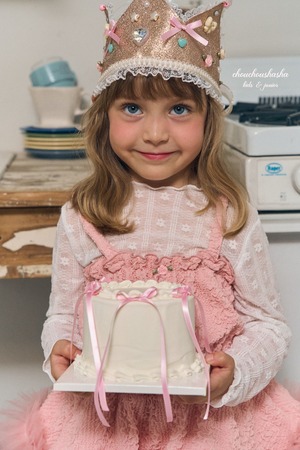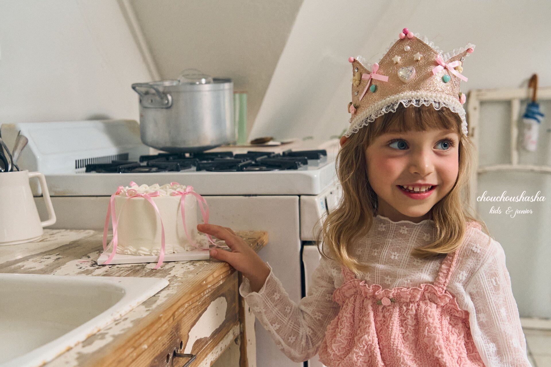 キュートな装飾やリボン、フラワーモチーフをあしらい可愛らしさを引き立てた王冠です。
